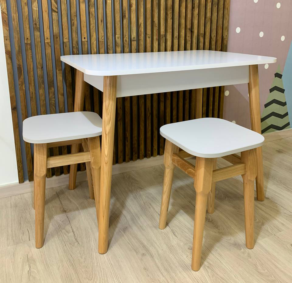 - Надёжные деревянные ножки из ламинированной ДСП — обеспечивают стабильность и выдерживают ежедневную нагрузку