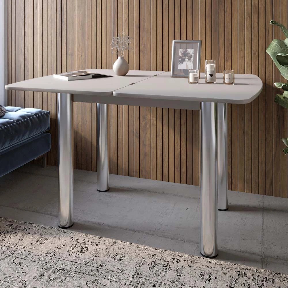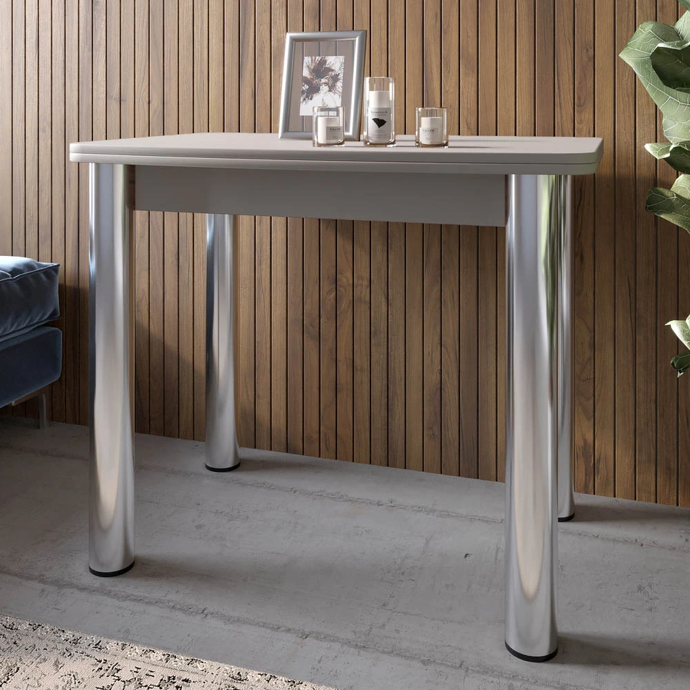 Обеденный стол раскладной LION Нота Кашемир 60x90/90x120 (LION-041285) ТОПРаскладной обеденный стол LION Нота в цвете Кашемир — это сочетание современного дизайна, практичности и уюта. Благодаря удобному механизму трансформации столешница увеличивается с 60×90 см до 90×120 см, обеспечивая дополнительное пространство для обедов и встреч. Тёплый оттенок Кашемир придаёт помещению лёгкість, затишок и елегантність.Изготовленный из прочной ламинированной ДСП от Swiss Krono, стол устойчив к царапинам и влаге. Металлические ножки обеспечивают надёжную опору и подчёркивают современный характер модели. LION Нота — это идеальный вариант для кухни, столовой или гостиной, где ценуються стиль і комфорт.Преимущества модели LION НотаРаскладной механизм позволяет увеличить рабочую поверхность с 60×90 см до 90×120 см.Элегантный цвет Кашемир создаёт атмосферу уюта и тепла.Столешница из ламинированной ДСП от Swiss Krono устойчива к влаге и повреждениям.Прочные металлические ножки гарантируют устойчивость и долговечность конструкции.Высота 75 см обеспечивает комфорт при использовании.Компактный и лёгкий в уходе — идеальное решение для современного дома.Гарантийный срок — 12 месяцев.Характеристики товараВысота, см — 75Глубина, см — 60Цвет — КашемирШирина, см — 120Материал корпуса — Ламинированная ДСПМатериал столешницы — Ламинированная ДСПМатериал ножек — МеталлГарантийный срок — 12 месяцевПроизводитель ЛДСП — Swiss Krono