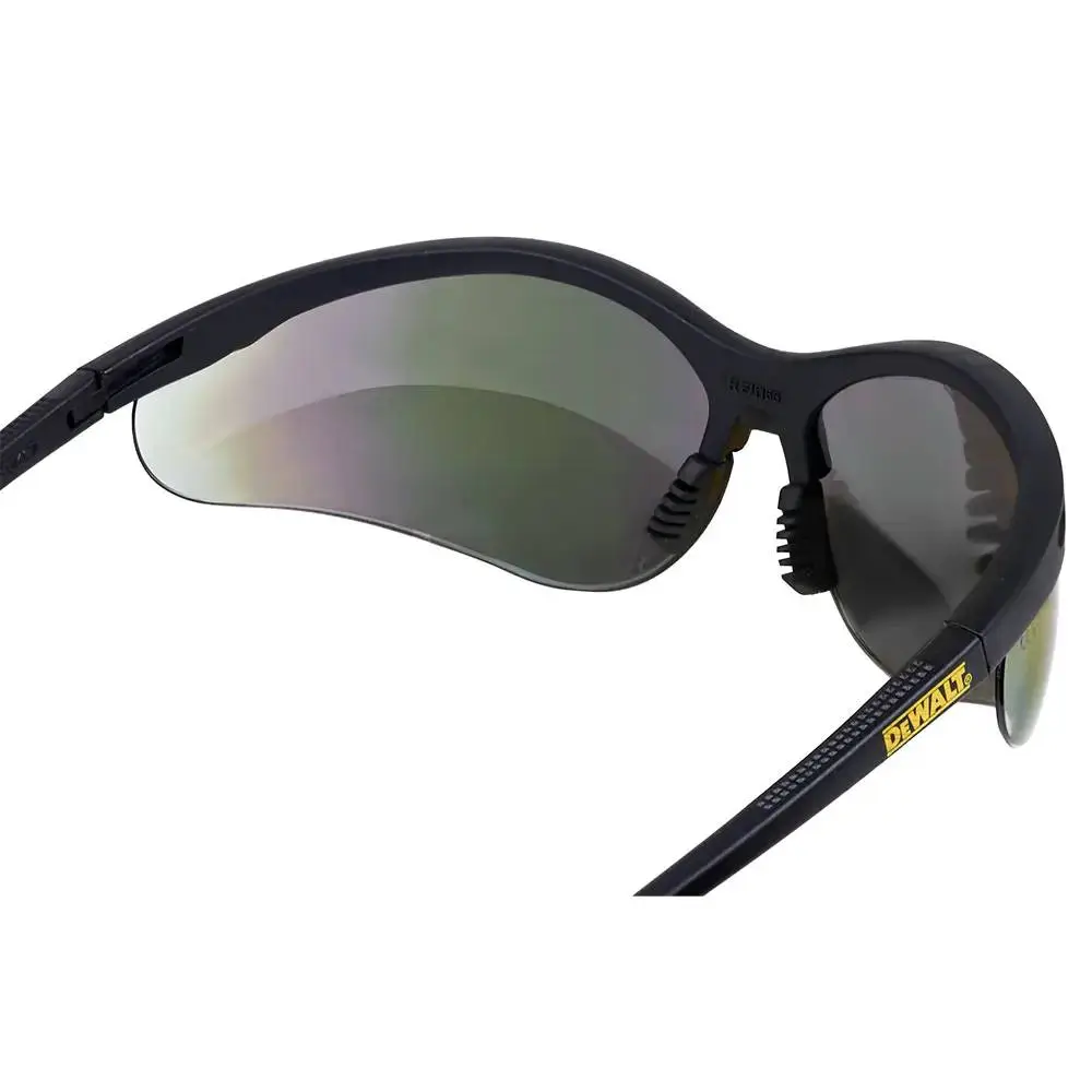Захисні окуляри DeWALT Reinforcer DPG58-6D з кольоровими (вогненно-дзеркальними) полікарбонатними лінзами забезпечують захист від ударів та УФ-променів (99,9% UVA/UVB). Лінзи з твердим покриттям стійкі до подряпин, а м'які гумові насадки на дужках та носоупорі додають комфорту для тривалого носіння. Оправа з нейлону з антиковзким покриттям полегшує посадку на шолом. Цей виріб пасує до робіт з яскравим освітленням у будівництві та ремонті.