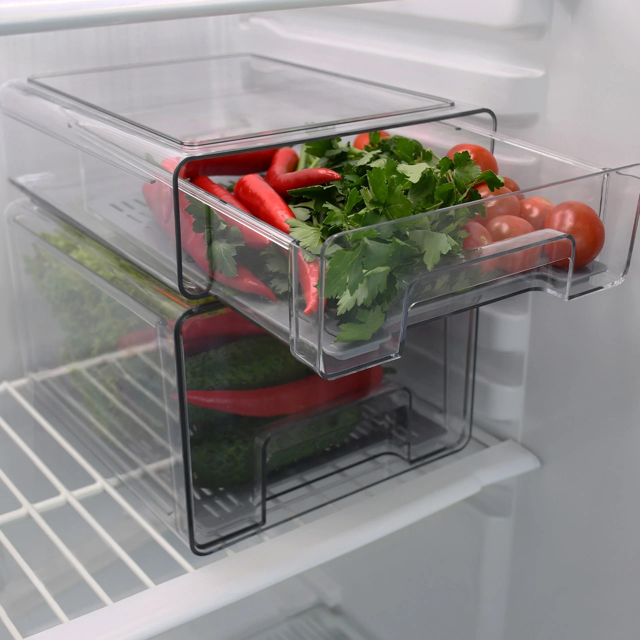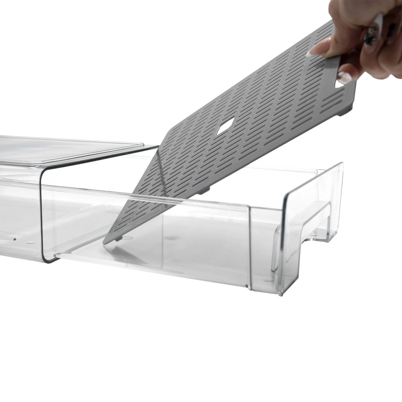 Зручний висувний органайзер із піддоном допоможе підтримувати свіжість ваших продуктів та забезпечить порядок у холодильнику. Його конструкція дозволяє легко діставати потрібні продукти, навіть якщо вони зберігаються в глибині. Піддон створює додатковий шар захисту від вологи та конденсату, завдяки чому їжа довше залишається свіжою. Ідеальне рішення для компактного та раціонального зберігання.