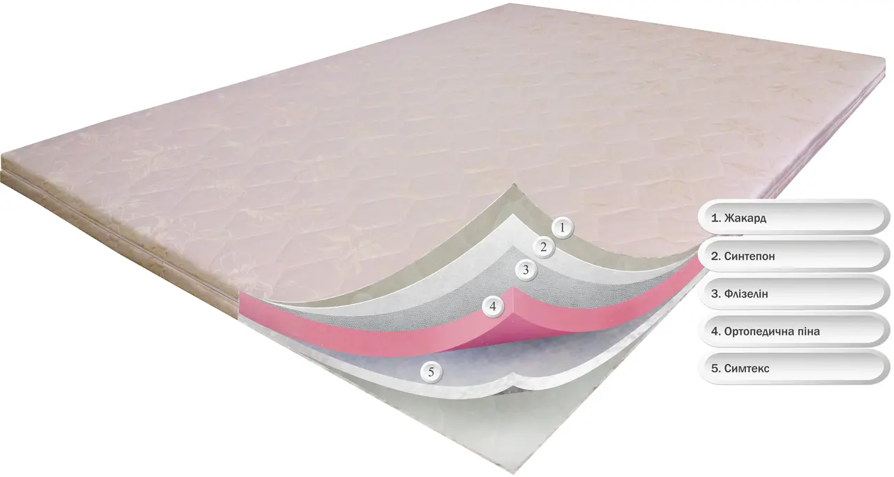 Тонкий матрац OrthoSlim2 здатен вирівняти та покращити рівень комфорту будь-якого спального місця. Завдяки висоті у 8 см приховуються навіть дуже значні дефекти, такі як перепади, стики, продавлені місця, пружини та інше. Завдяки сучасним ортопедичним матеріалам, матрац додає комфорту та робить спальне місце дійсно зручним та корисним. Матрац OrthoSlim2 найкраще підходить для поціновувачів жорстких та середніх за жорсткістю матраців. По кутках матрацу є резинки для надійного кріплення. Завдяки висоті у 8 см матрац можливо використовувати як самостійне або гостьове спальне місце. Основою матрацу є ортопедична піна - якісний сучасний наповнювач, що володіє достатньою жорсткістю, дозволяє правильно розподіляти навантаження, забезпечує чудові анатомічні властивості, здатний служити багато років без ризику просідання. Нижній шар матрацу виготовлений із щільного ортопедичного матеріалу - сімтексу, що добре вирівнює поверхню та прибирає дефекти спального місця. Чохол матраца виготовлений з економічної і надійної жакардової тканини, прошитої синтепоном. Чохол знімний на блискавці, його можна прати. Замовте цей матрац на нашому сайті — ми забезпечимо швидке виготовлення та доставку, оскільки ми є його виробником!