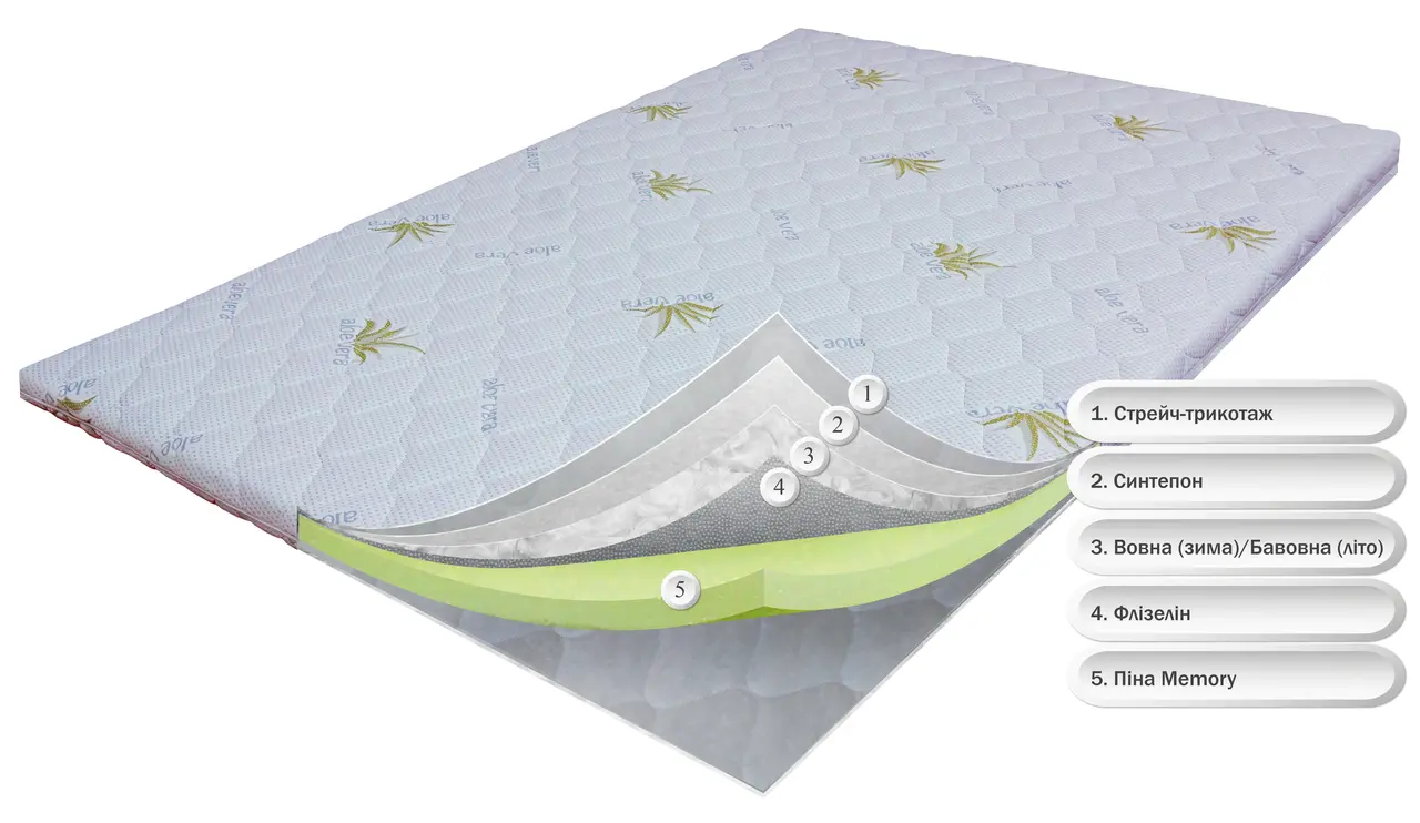 Тонкий ортопедичний матрац OrthoSlim3 з ефектом пам’яті призначений для пом’якшення та надання анатомічних властивостей спальному місцю. Матрац використовується на диванах та матрацах які виявились занадто жорсткими. Використання матрацу OrthoSlim3 з піною Memory значно покращить рівень комфорту та користі вашого дивану або матрацу, та дозволить дійсно насолоджуватись відпочинком. По кутках матрацу є резинки для надійного кріплення. Матрац дуже легко згортається. Дана модель не призначена для вирівнювання поверхні. В основі матрацу використовується піна Memory foam з ефектом пам'яті – сучасний анатомічний матеріал. Завдяки ефекту облягання тіла - максимально розслаблюються м'язи, знімається напруга і забезпечується правильне положення хребта. Крім того піна Memory пом'якшує спальне місце, для більш комфортного відпочинку. Піна м'яко обволікає тіло, створюючи ефект занурення. М'який і приємний чохол "Алое віра" з ефектом "Зима/Літо" зігріває взимку і добре "дихає" влітку. Для досягнення ефекту "Зима/Літо" тканина стрейч-трикотаж, прошивається натуральною бавовною з літнього боку і натуральною шерстю з зимової. Чохол знімний на блискавці, його можна прати. Замовте цей матрац на нашому сайті — ми забезпечимо швидке виготовлення та доставку, оскільки ми є його виробником!