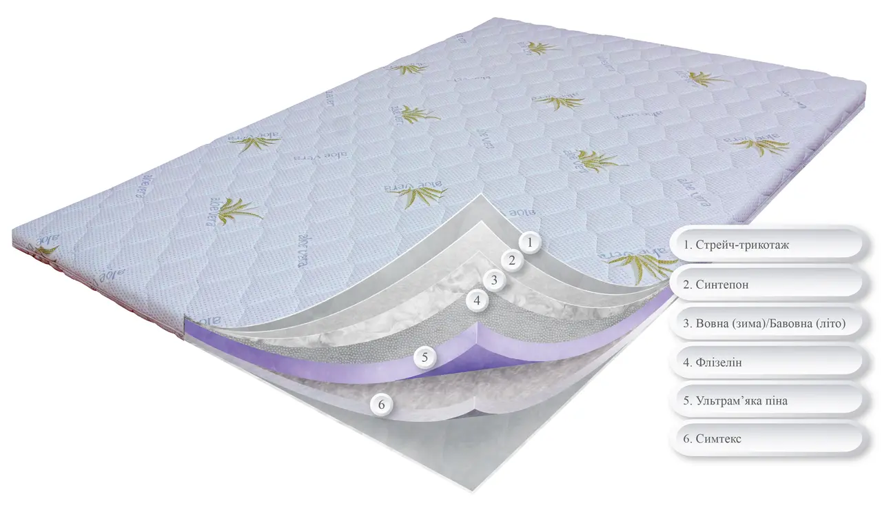 Тонкий ортопедичний матрац OrthoSlim7 з ультрам’якою піною призначений для вирівнювання, пом’якшення та надання анатомічних властивостей спальному місцю. Матрац здатен приховати значні дефекти спального місця, такі як перепади, стики, продавлені місця, пружини та інше. Використання матрацу OrthoSlim7 значно покращить рівень комфорту та користі вашого дивану або матрацу, та дозволить дійсно насолоджуватись відпочинком. По кутках матрацу є резинки для надійного кріплення. Матрац легко згортається. При потребі OrthoSlim7 можна використовувати як самостійний матрац або гостьове спальне місце. В основі матрацу використовується ультрам'яка піна, яка завдяки своїм анатомічним властивостям, підтримує тіло в кожній точці, розслабляє м’язи та сприяє максимально комфортному відпочинку. Нижній шар матрацу виготовлений із щільного ортопедичного матеріалу - сімтексу, що добре вирівнює поверхню та прибирає дефекти спального місця. М'який і приємний чохол "Алое віра" з ефектом "Зима/Літо" зігріває взимку і добре "дихає" влітку. Для досягнення ефекту "Зима/Літо" тканина стрейч-трикотаж, прошивається натуральною бавовною з літнього боку і натуральною шерстю з зимової. Чохол знімний на блискавці, його можна прати. Замовте цей матрац на нашому сайті - ми забезпечимо швидке виготовлення і доставку, оскільки ми є виробником!