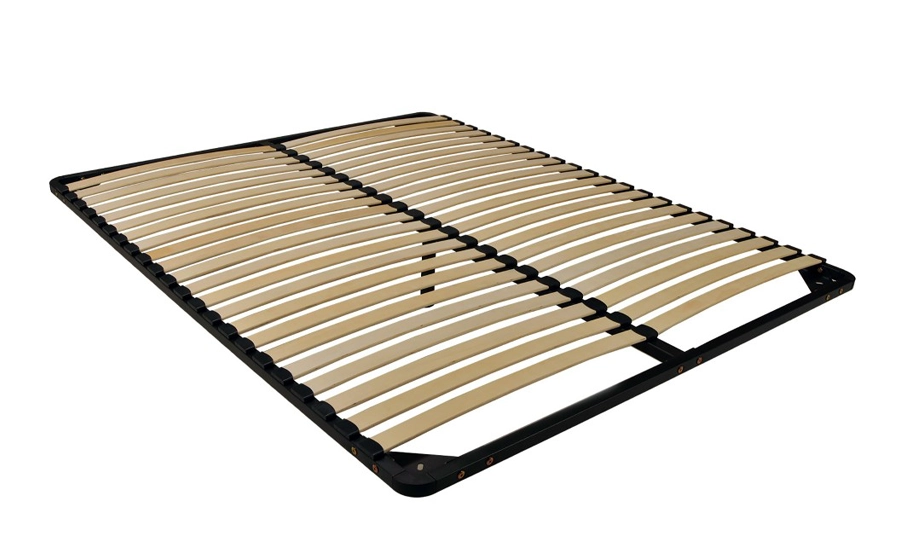- Конструкція складається з міцної металевої рами та гнучких дерев’яних ламелей, які забезпечують стійкість, підтримку й збереження ортопедичних властивостей матраца.