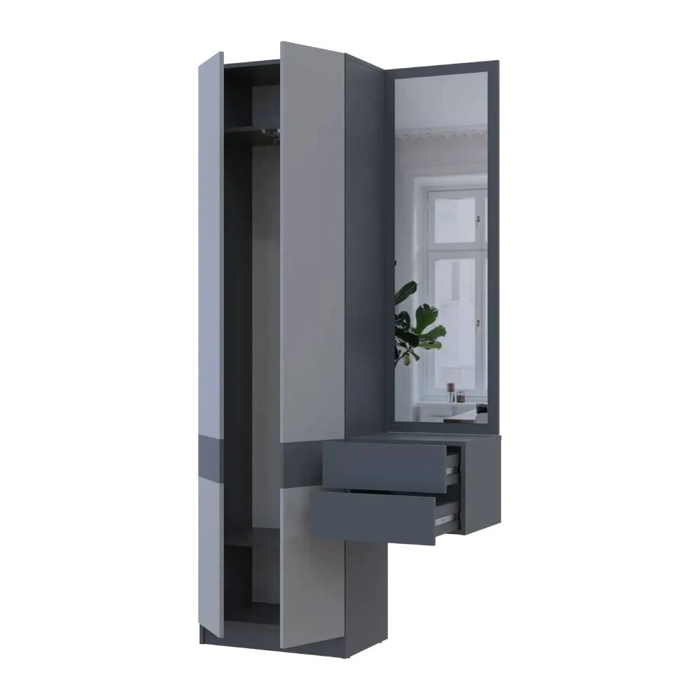 Шукаєте ідеальне рішення для облаштування вашого передпокою? Модульний комплект Doros Сола стане справжнім відкриттям для кожного, хто цінує естетику та функціональність. Завдяки сучасному дизайну у графітовому та сірому кольорах, цей комплект легко впишеться в будь-який інтер'єр, додаючи йому стильності та комфорту.