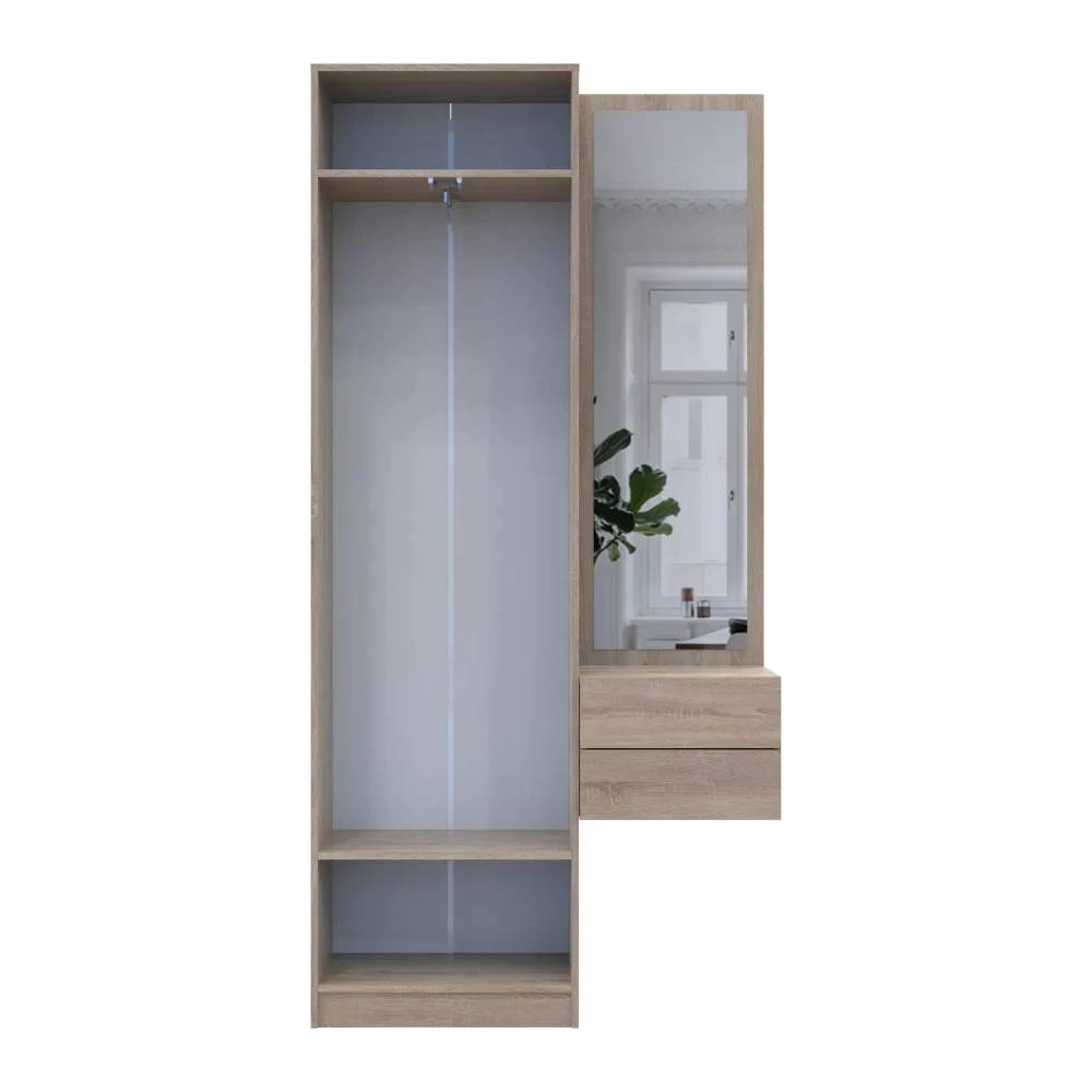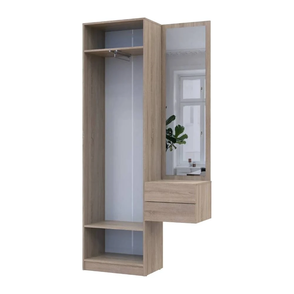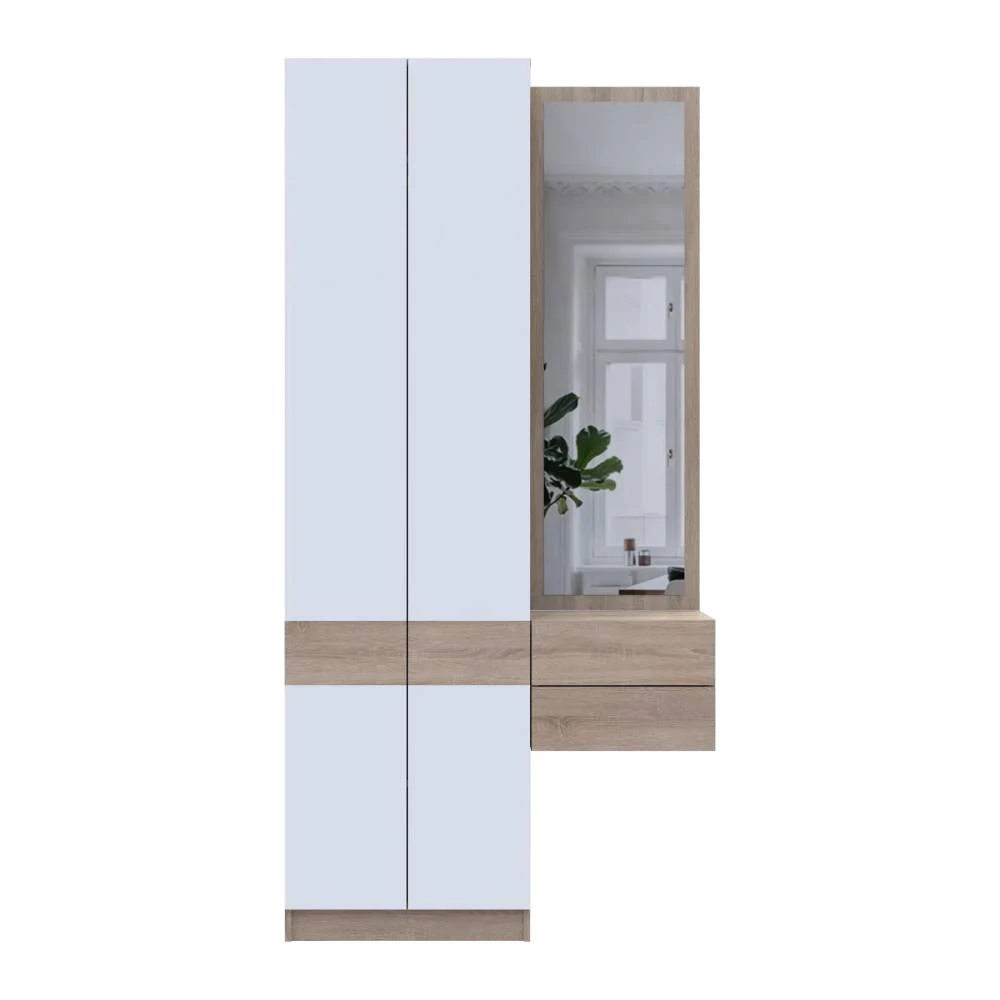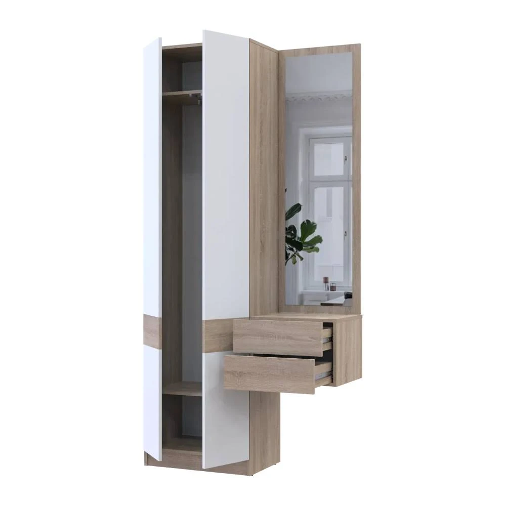 Передпокій Doros Сола — це ідеальне поєднання функціональності та естетики. Модульний комплект, що складається з двох елементів, стане чудовим доповненням до вашого інтер'єру. Дизайн у кольорах дуба Сонома та білого виглядає сучасно і стильно, додаючи легкості та затишку в простір. Розміри 105х40х215 см дозволяють ефективно використовувати навіть невелику площу, забезпечуючи при цьому достатньо місця для зберігання речей.