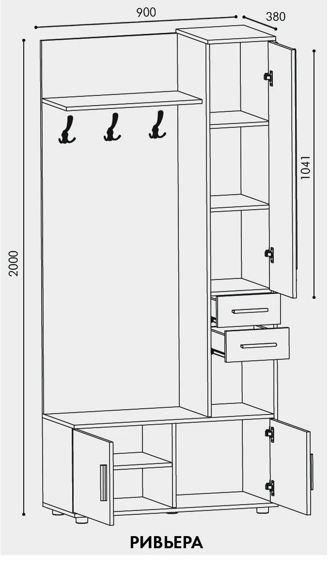 Габарити передпокою Рів'єра (Ш х Г х В) 150 х 38 х 200 см