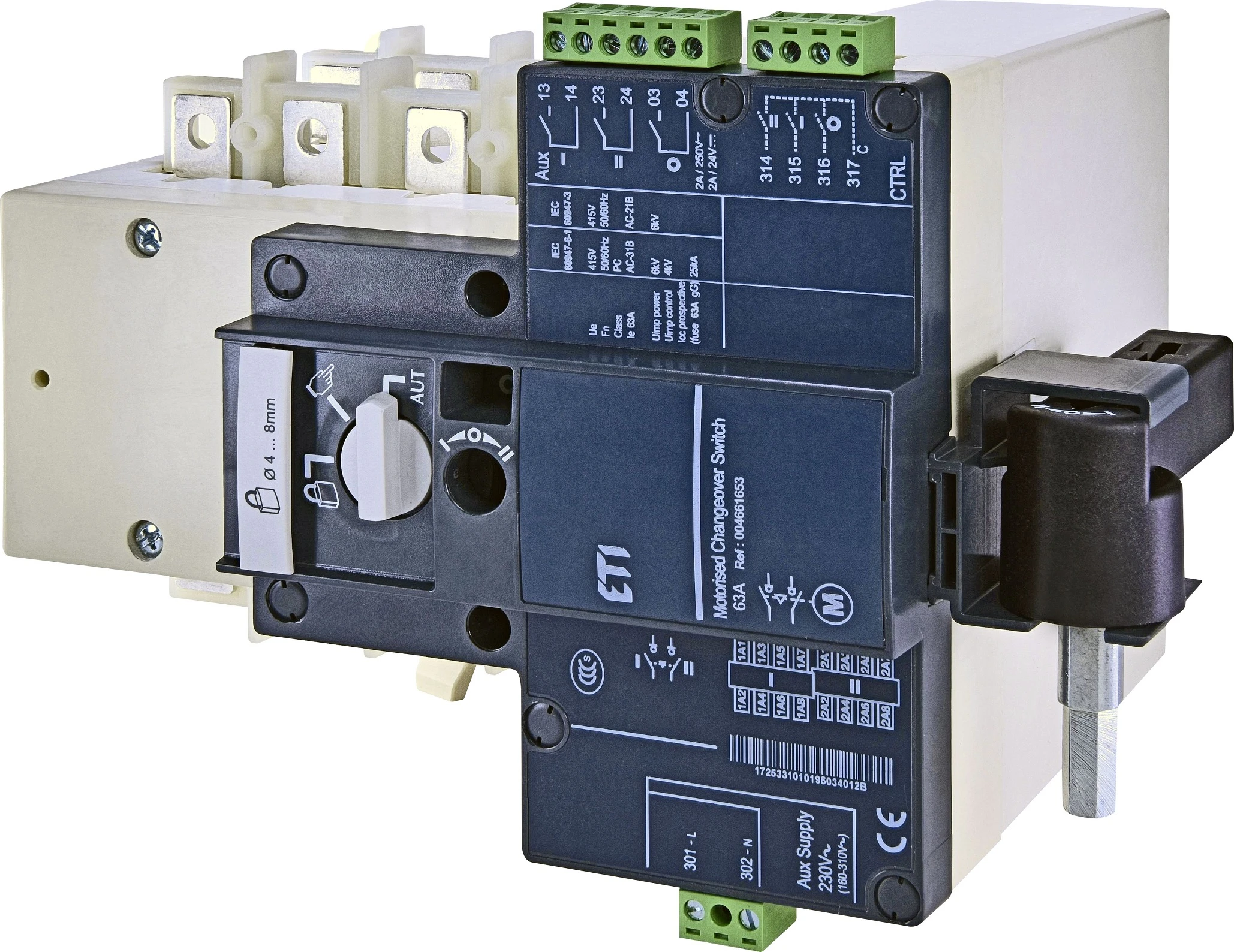 Перемикач навантаження ETI, з мотор-приводом MLBS 63 230VAC 4P CO ("1-0-2", 63А)