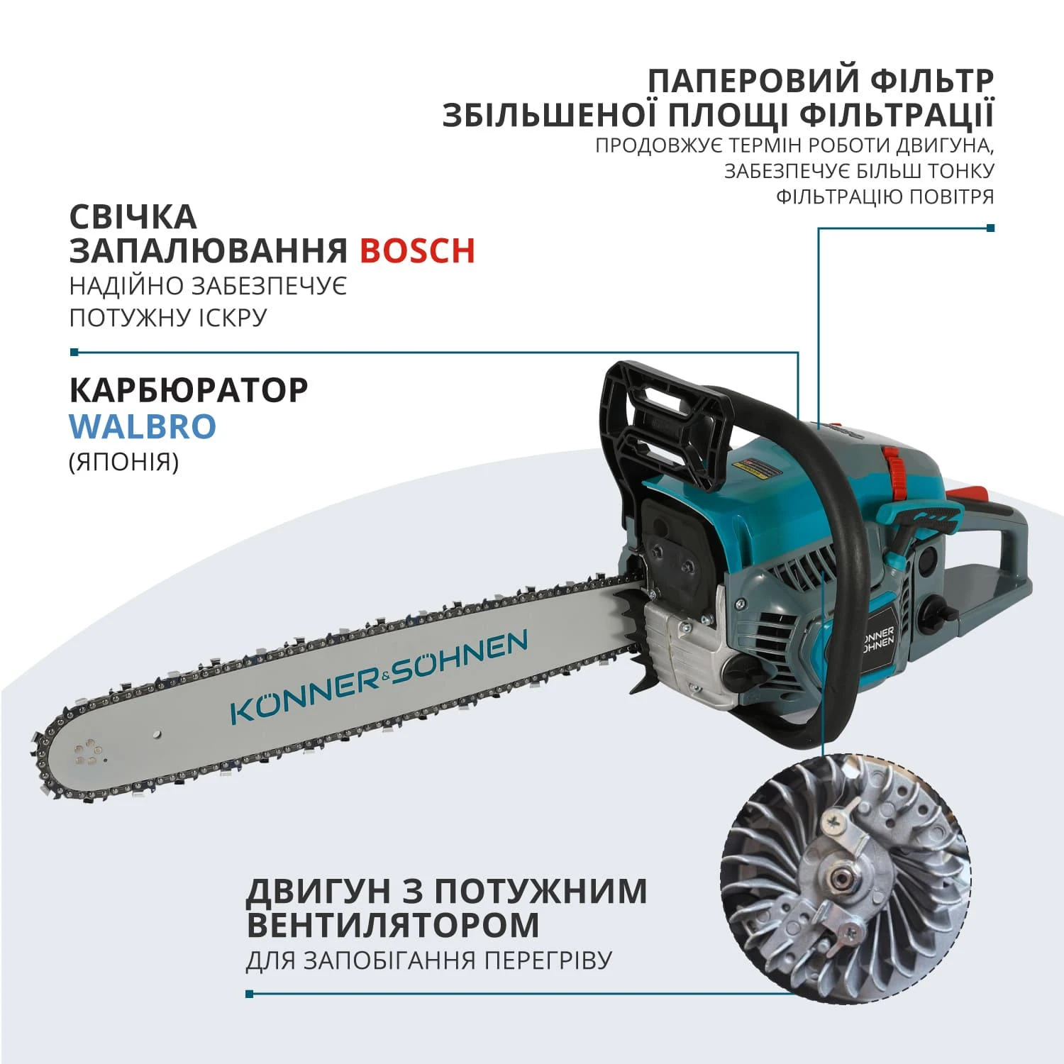 Пила бензинова Konner&Sohnen KS CS31G-20 50см 54.5см3 5.6кг