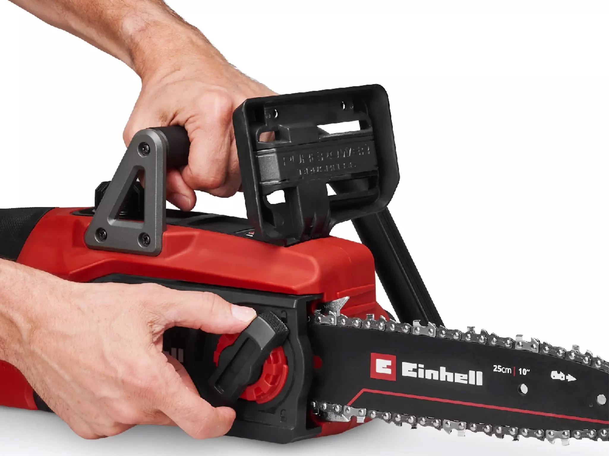 Акумуляторна ланцюгова пила Einhell GE-LC 18/25 Li-Solo (4600070) — компактний інструмент із безщітковим двигуном, шиною 25 см та швидкістю ланцюга 6,5 м/с для обрізки дерев, заготівлі дров і будівельних робіт. Поставляється без акумулятора та зарядного пристрою.