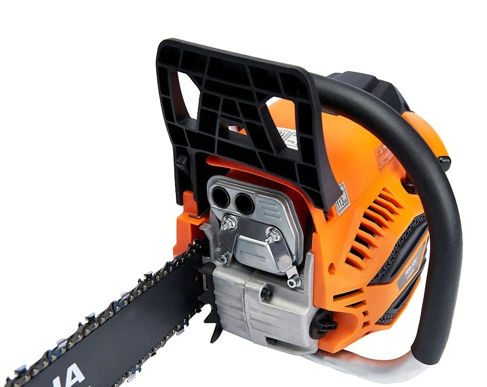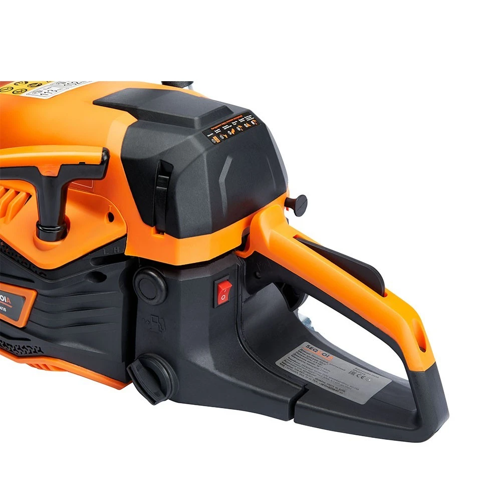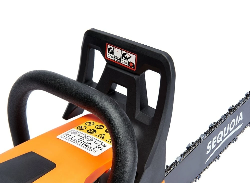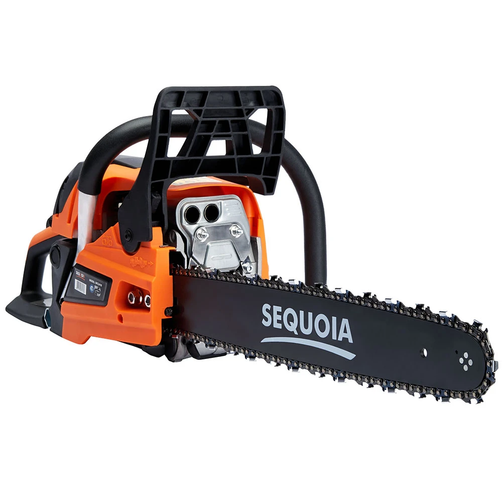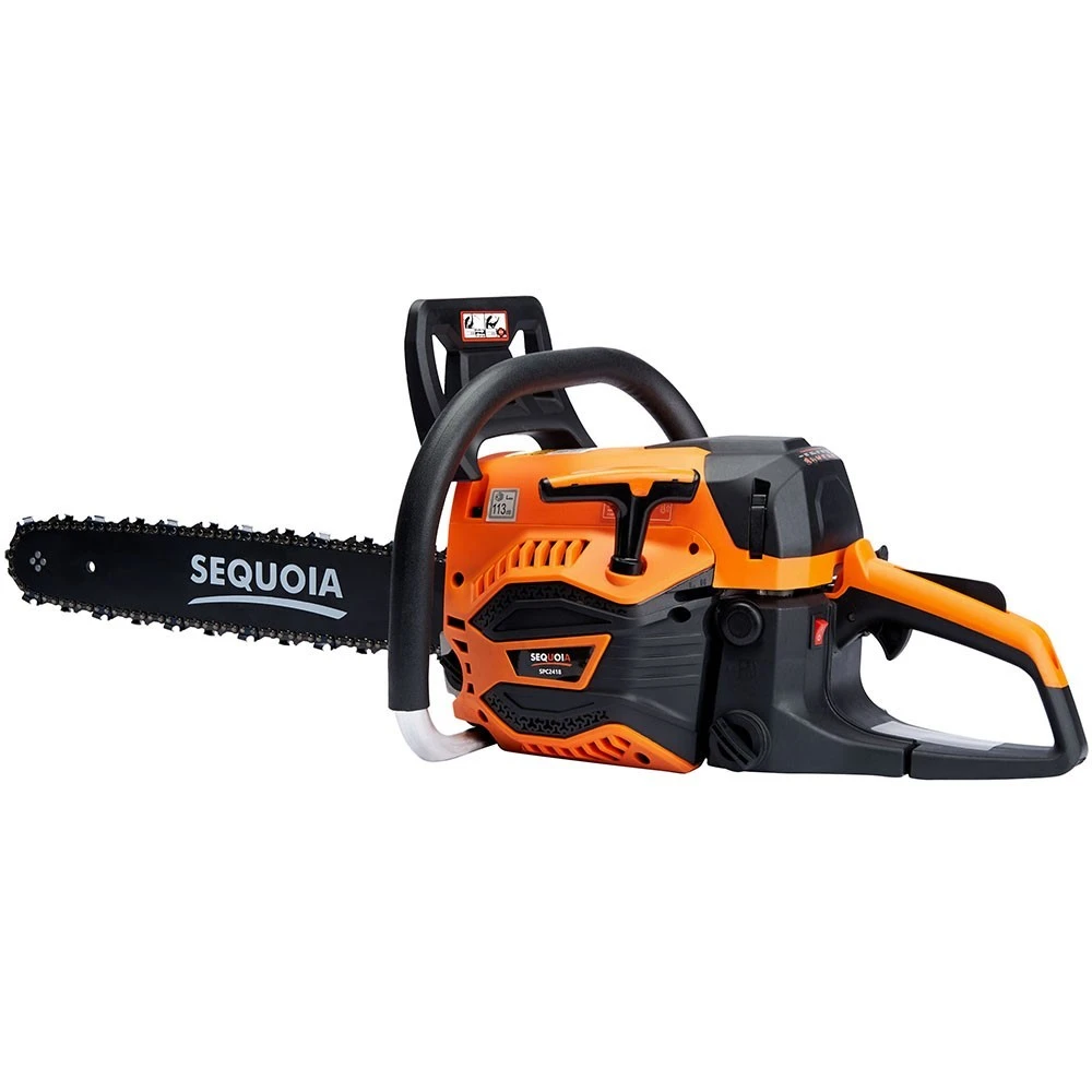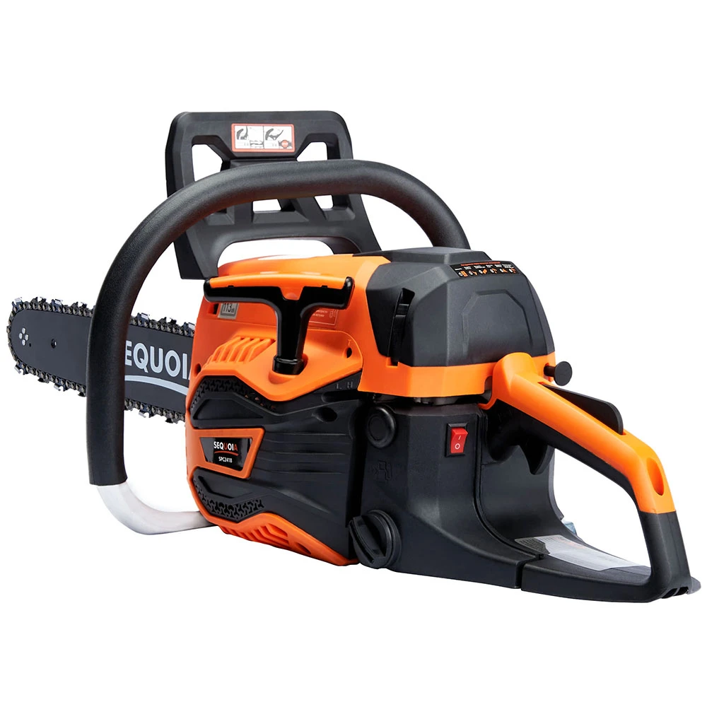 Бензинова ланцюгова пила SEQUOIA SPC2418 оснащена двотактним двигуном об’ємом 45 см³ та потужністю 2,4 кВт. Шина 45 см з кроком ланцюга 0,325" та швидкістю ланцюга 25 м/с забезпечує ефективний різ деревини середньої твердості. Об’єм паливного бака 0,55 л та масляного 0,26 л дозволяють працювати без частої заправки. Антивібраційна система та автоматична подача мастила підтримують комфорт та довговічність гарнітури. Вага 5,48 кг робить інструмент зручним для тривалого використання.