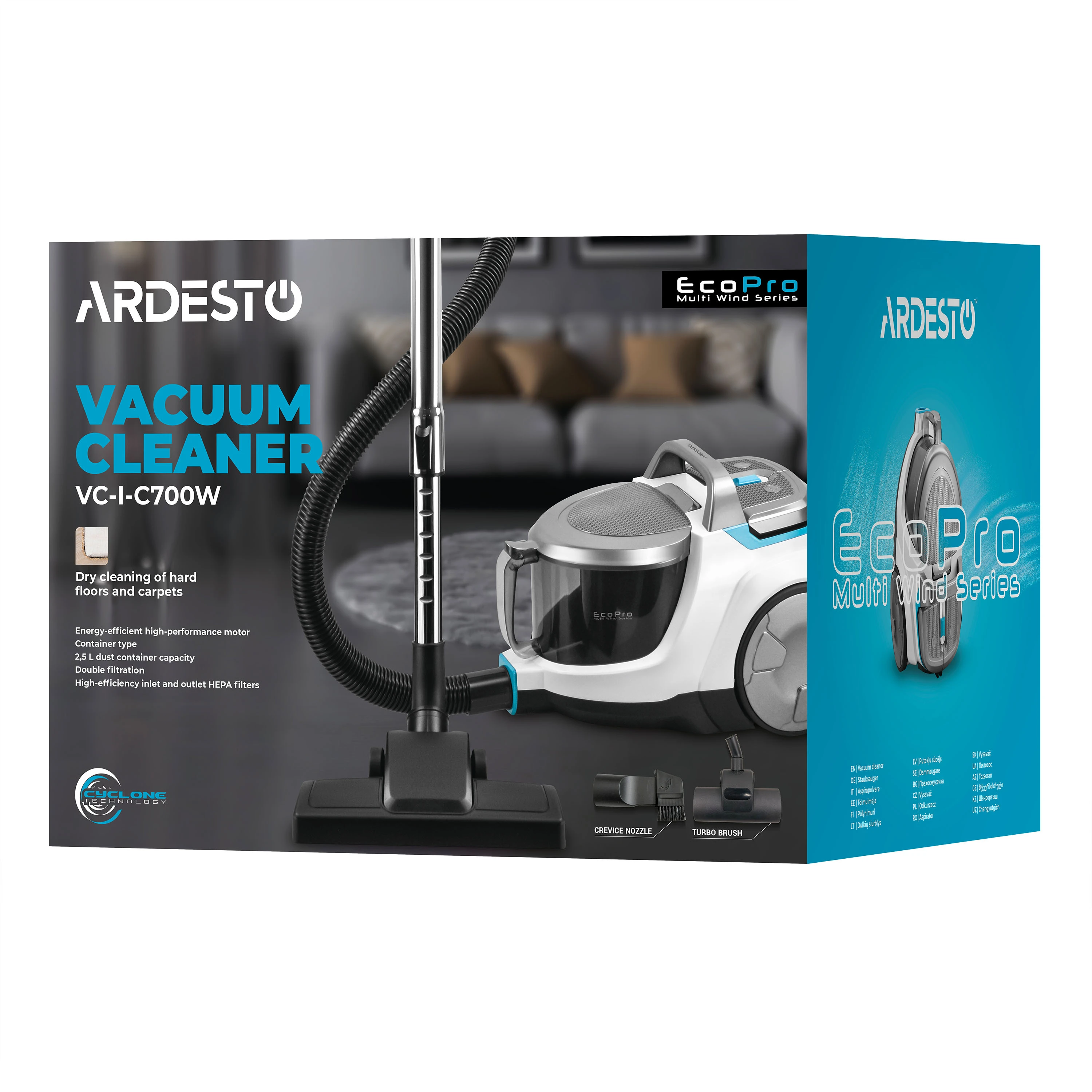 Пилосос ARDESTO контейнерний, 700Вт, конт пил -2.5л, НЕРА, біло-сріблястий