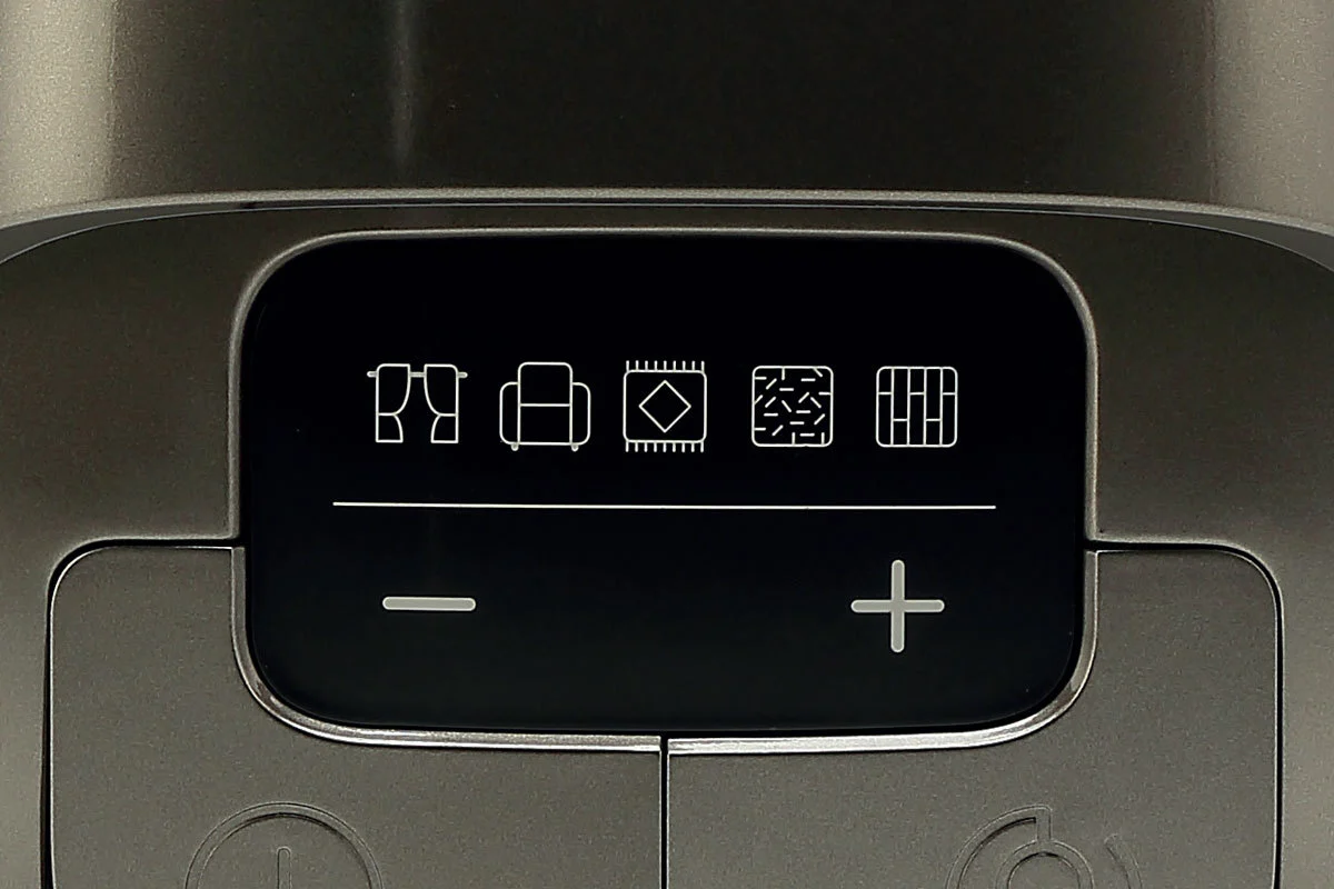 Легко перемикайтеся між програмами на дисплеї зі світлодіодним індикацією і вибирайте ідеальну потужність для будь-якого типу покриття: низьку для делікатних поверхонь або повну для твердої підлоги. Насолоджуйтеся зручністю в один дотик.