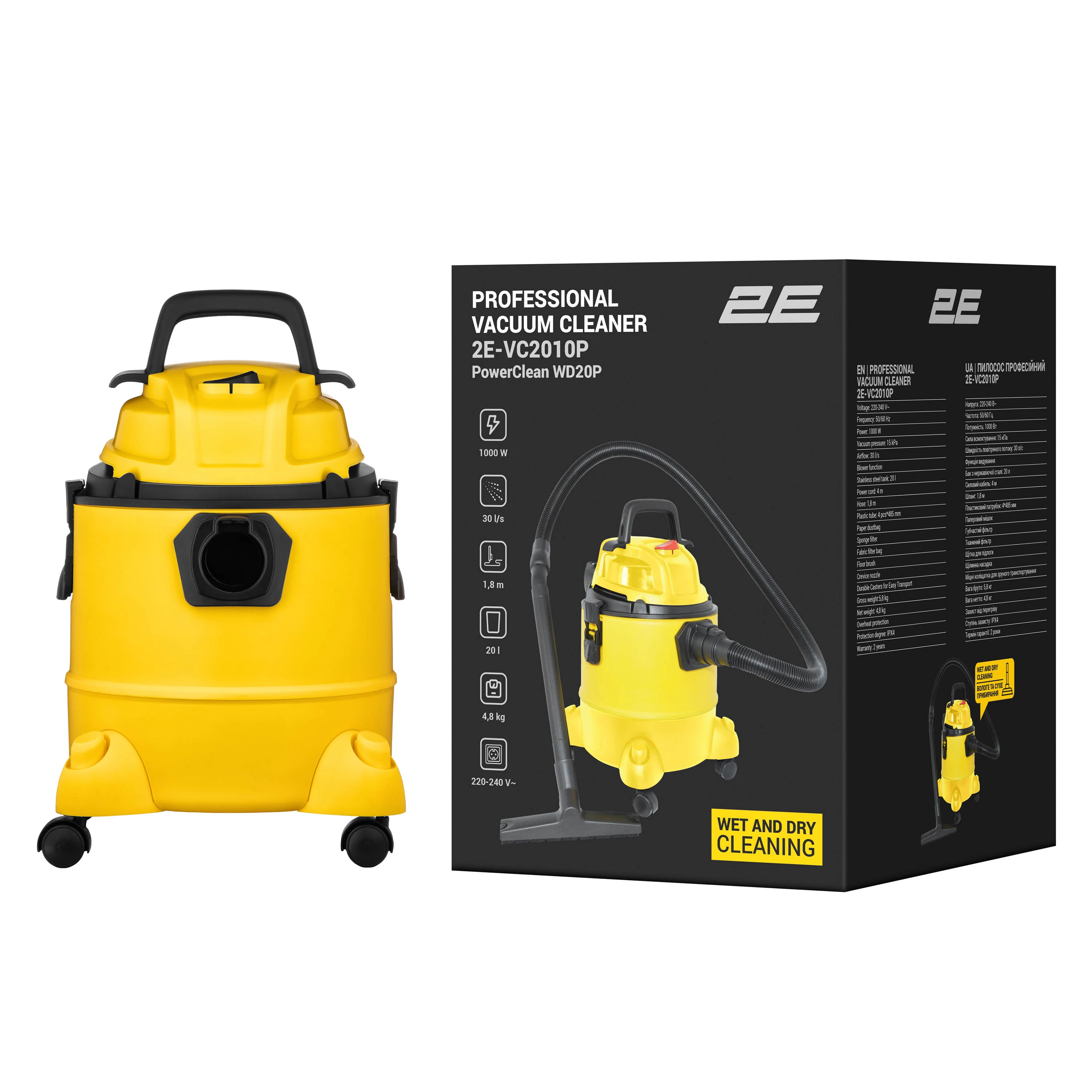 Професійний пилосос 2E PowerClean 20P – надійний інструмент для сухого та вологого прибирання в майстернях, гаражах чи під час ремонтних робіт. Потужний двигун 1 000 Вт і бак ємністю 20 л забезпечують ефективне збирання пилу, стружки та рідини. Передбачено систему багатоступеневої фільтрації, завдяки якій робота пристрою є стабільною. Завдяки міцній конструкції з широкими колесами, компактному розміру та набору насадок модель є зручною щодо використання й універсальною для різних завдань.