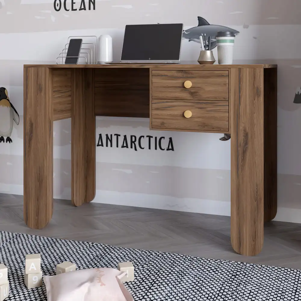 Этот стол не только привлекателен, но и чрезвычайно практичен. Благодаря двум удобным ящикам вы сможете организовать свое рабочее место, сохраняя важные вещи под рукой. Больше не нужно искать ручки или блокноты – все будет на своем месте!