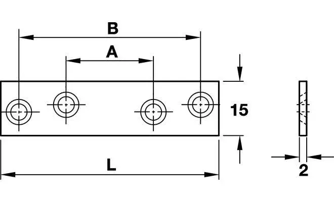 З'єднувальна планка з 4 отворами, виготовлена з оцинкованої сталі. Розміри планки: ширина-15мм; довжина-80мм; товщина -2 мм.
