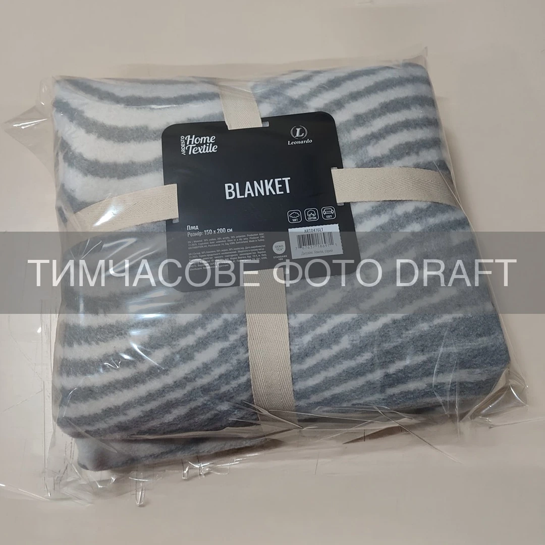 Плед ARDESTO Leonardo 200х220см, 50% бавовна, 30% поліестер, 20% акрил, хвиля сірий