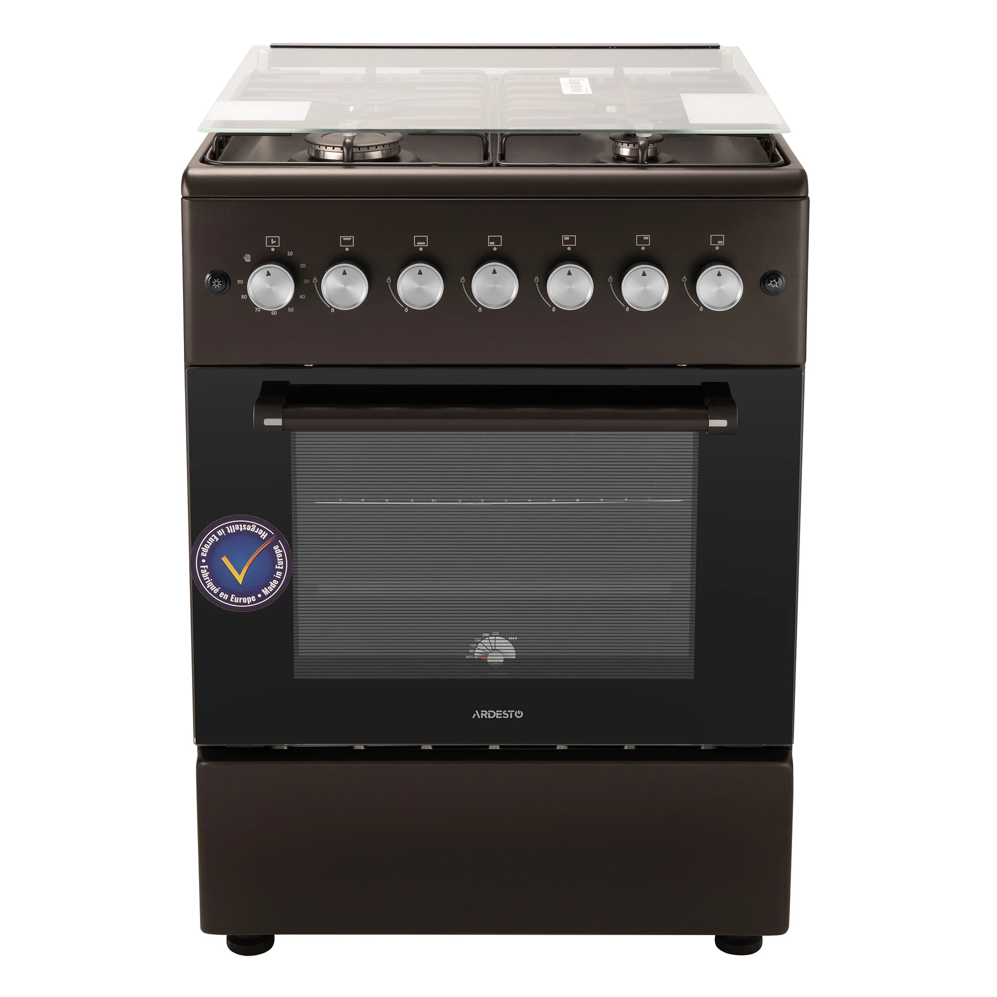 Плита ARDESTO газова, 58л, 60x60см, скляна кришка, електропідпал, підсвічування, таймер, термометр,