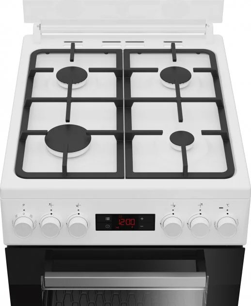 Плита Beko комбінована, 60л, 50x60см, дисплей, конвекція, чавун, білий