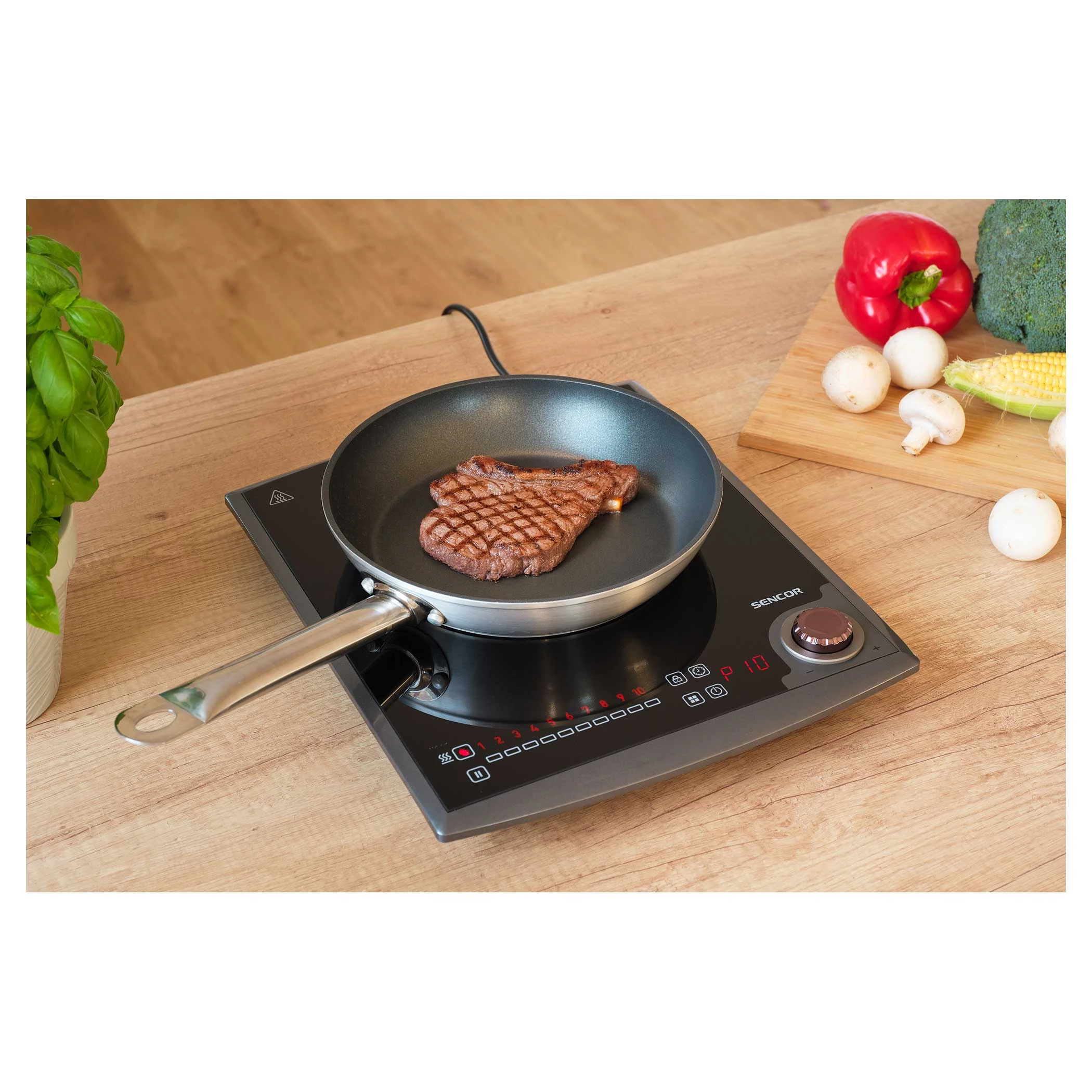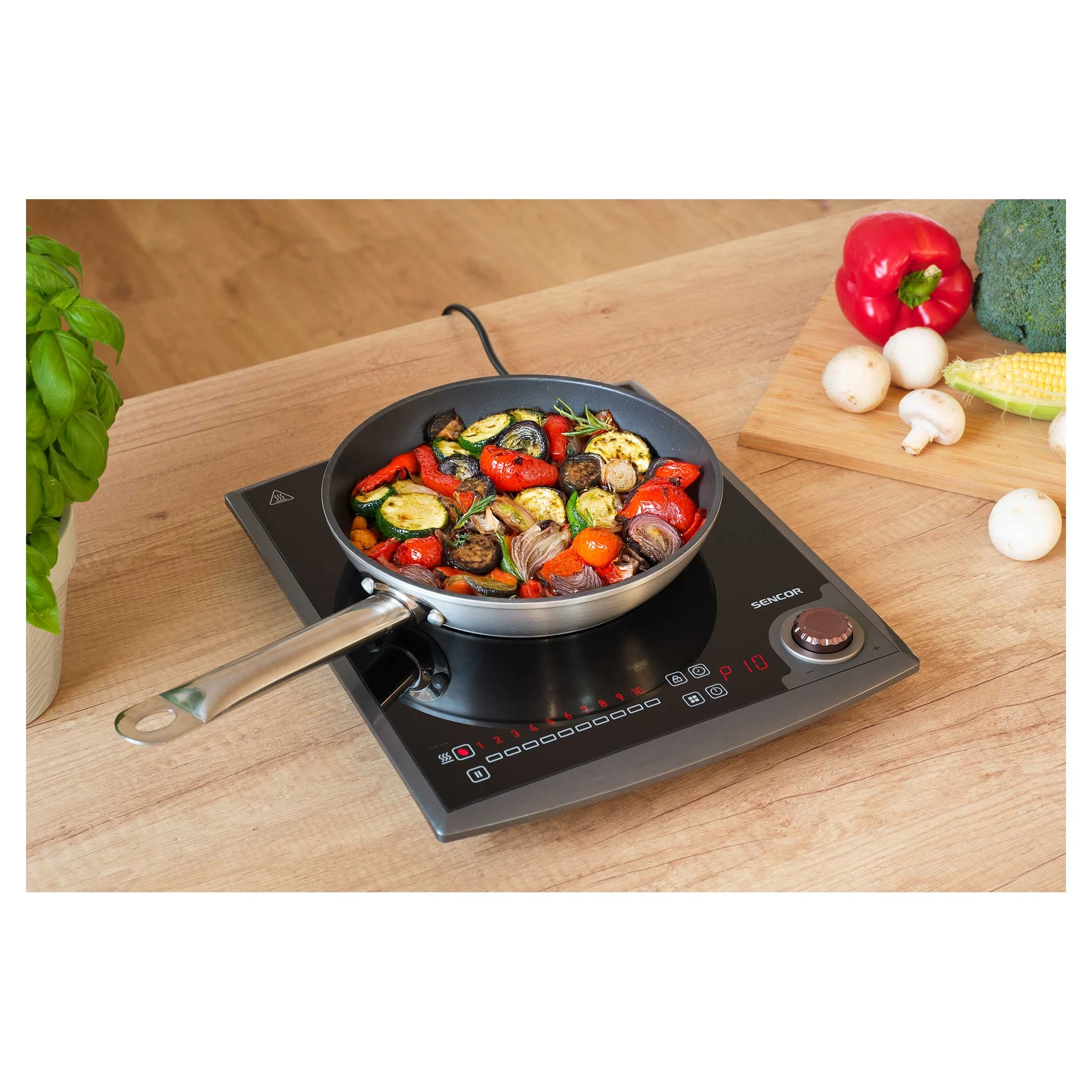 Індукційна плита Sencor SCP 3414GY з однією конфоркою має потужність 2000 Вт і забезпечує рівномірне нагрівання посуду. Сенсорне та механічне керування спрощує використання, а десять рівнів температури дозволяють обрати потрібний режим. Таймер допомагає контролювати процес приготування до трьох годин. Завдяки компактній конструкції прилад легко розмістити або взяти із собою.