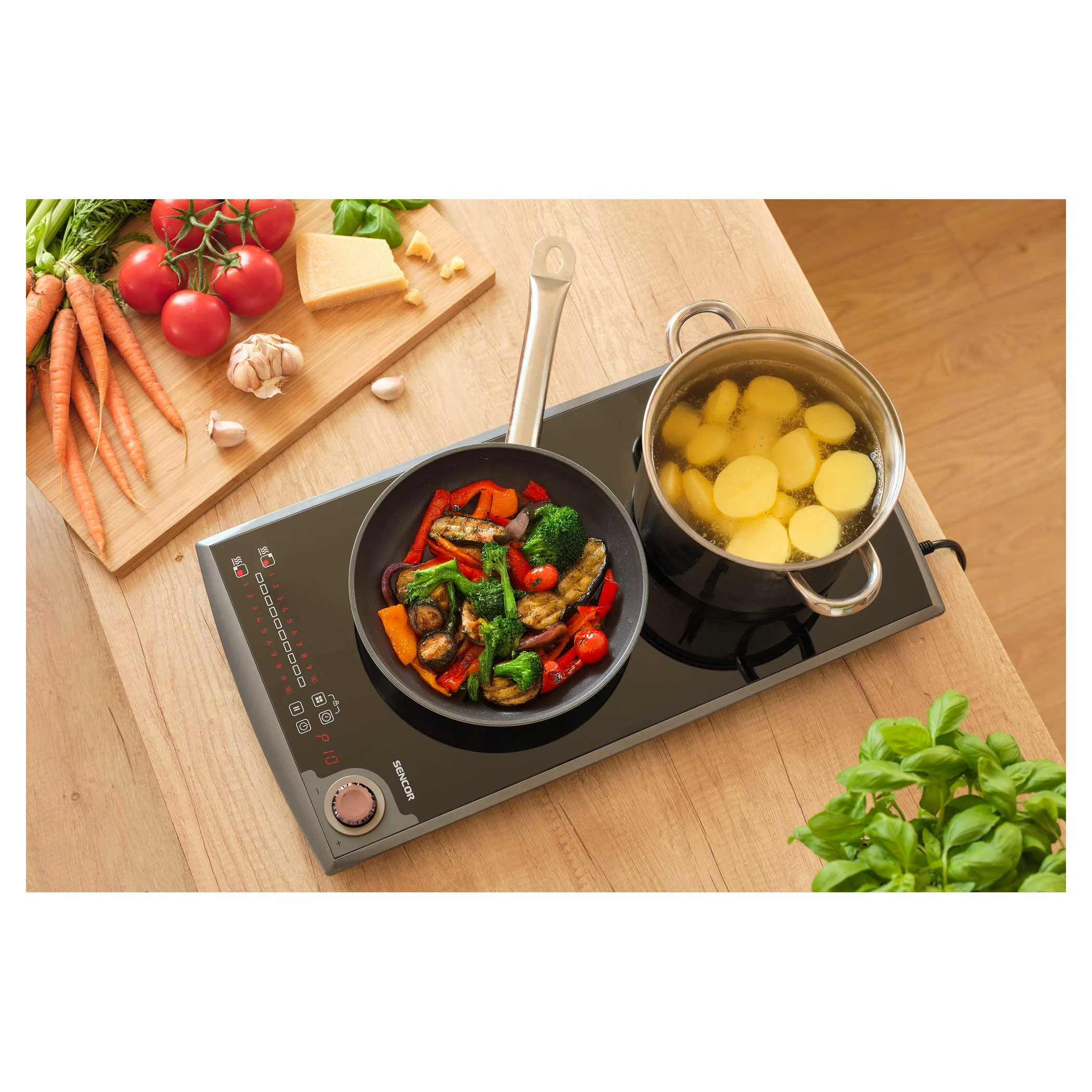 Плитка настільна Sencor індукційна, комф. - 2, 1.3+1.8кВт, управл - сенсор-мех., чорний