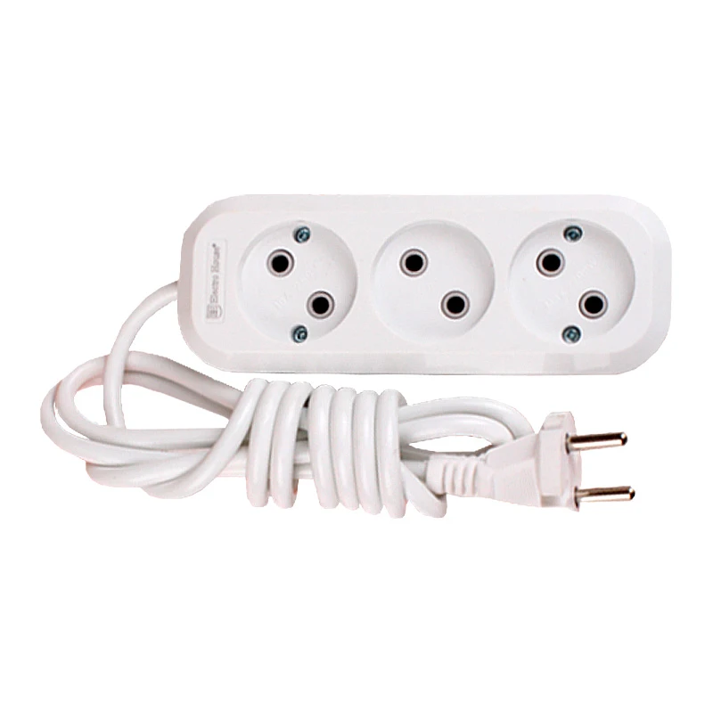 Подовжувач без заземлення, 3 розетки, 5 м, білий