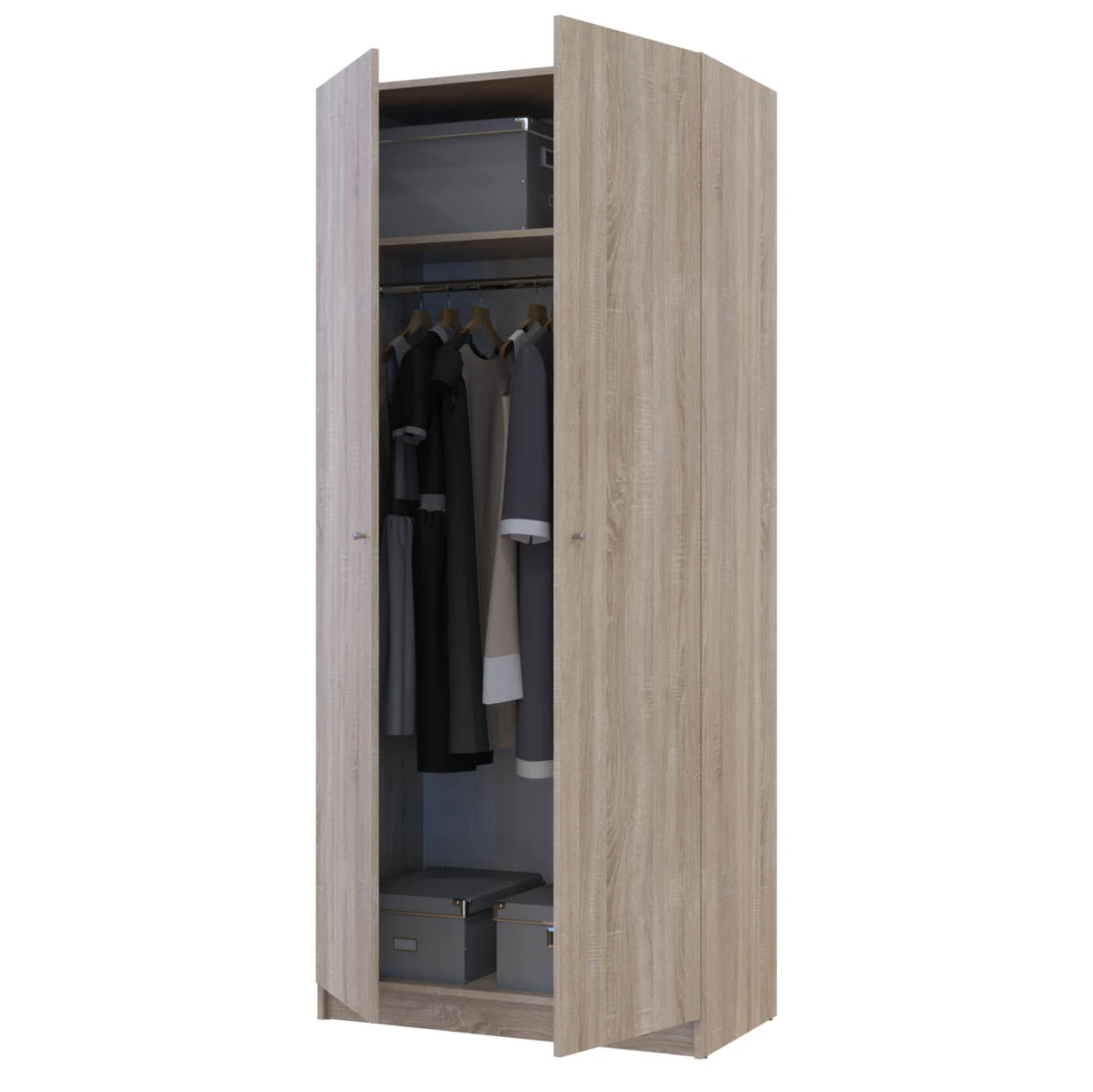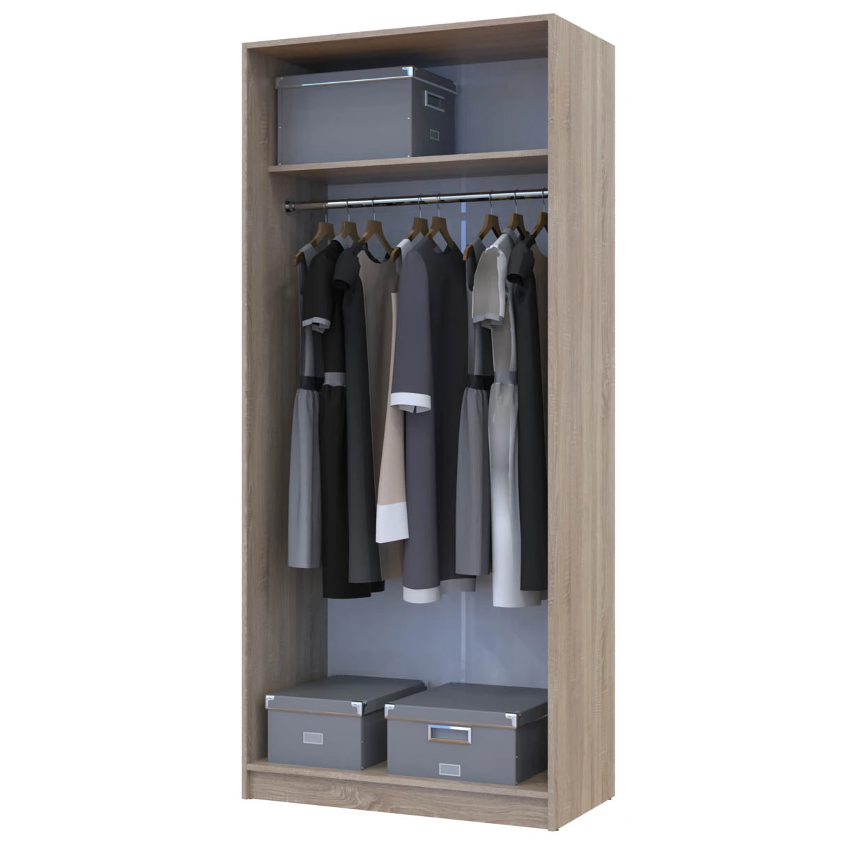 Шукаєте стильний та функціональний елемент для організації простору? Полиця для одягу Doros Promo в кольорі Дуб Сонома стане чудовим доповненням до будь-якого інтер'єру. Її розміри 86.7х35х1.6 см дозволяють зручно розмістити одяг, взуття та аксесуари, а елегантний дизайн підкреслить ваш смак і стиль. Завдяки трьом полицям ви зможете легко підтримувати порядок у вашій шафі або коридорі.