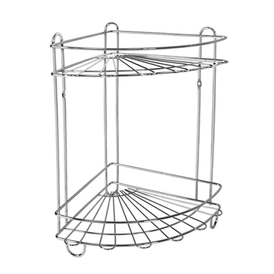 Компактна двоярусна полиця з хромованим покриттям ідеально підходить для кутового розміщення. Зберігає простір та організовує ванну кімнату, розміщуючи всі необхідні засоби під рукою.