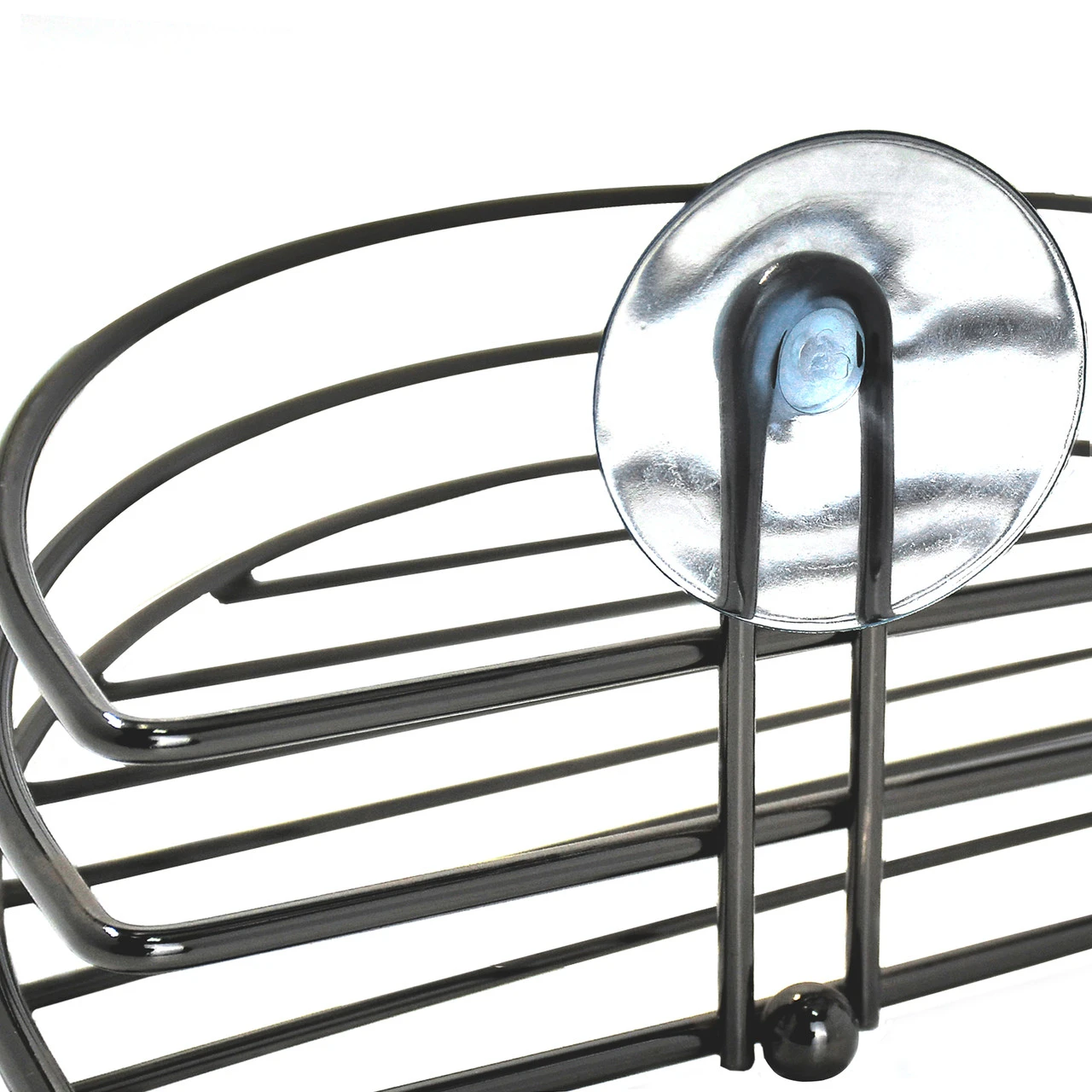 Елегантна навісна полиця з покриттям «чорний нікель» стане стильним доповненням інтер’єру ванної чи кухні. Оснащена двома потужними присосками, вона надійно тримається на гладких поверхнях без потреби у свердлінні. Оптимальний розмір дозволяє розмістити гелі, шампуні, мило або інші дрібниці, зберігаючи порядок у просторі. Покриття стійке до вологи та корозії.
