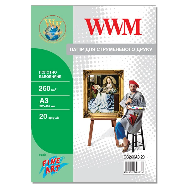 Полотно WWM натуральне бавовняне, 260Г/м кв, A3, 20л (CC260A3.20)