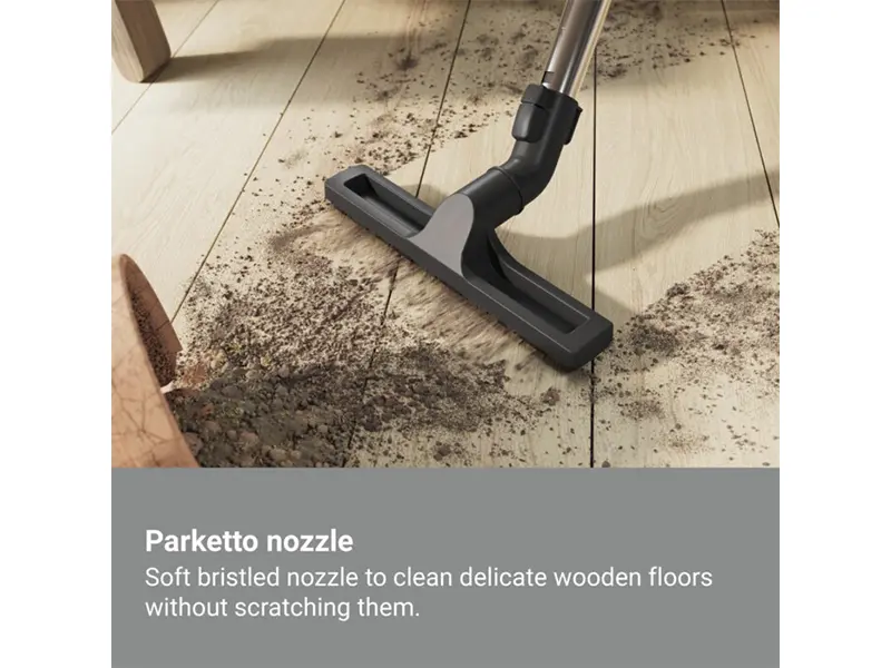 Завдяки 100% збиранню пилку в щілинах, потужній силі всмоктування та новій насадці для всіх типів поверхонь AllFloor цей пілосос ефективно видаляє пил і бруд із твердої підлоги та килимів. без того, режим прибирання насадки зручно змінюється одним рухом ноги.