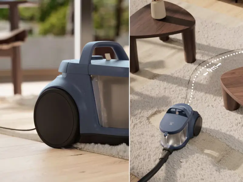 Зробіть щоденне приготування легким за допомогою пілососа з ергономічним дизайном. Пересувайтеся без зусиль завдяки великим колесам, компактному розміру та радіусу дії 9 метрів. Компактний дизайн також спрощує зберігання, коли пілосос не використовується.