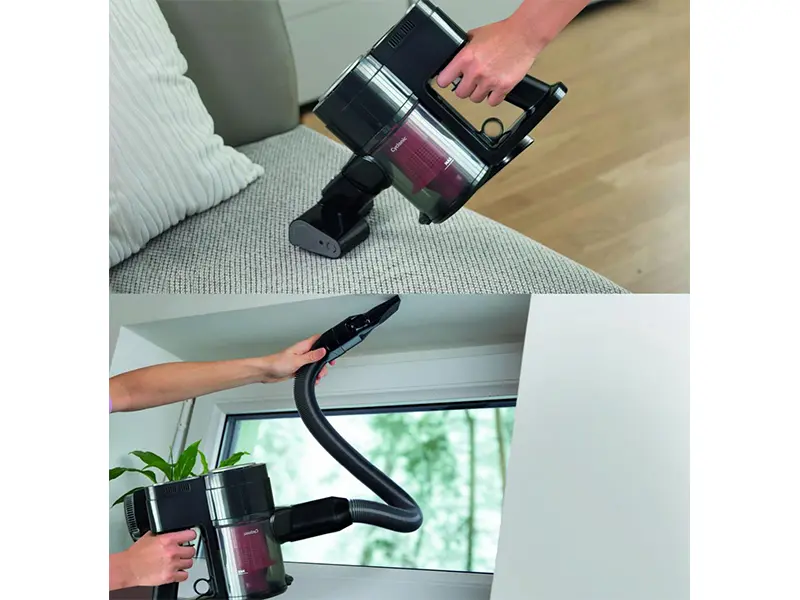 Насолоджуйтесь усіма перевагами вертикального пилососа, який за лічені секунди перетворюється на ручний. Подбайте про чистоту всюди — від прибирання підлоги пилососом до обробки дивана, салону автомобіля або очищення важкодоступних верхніх полиць.