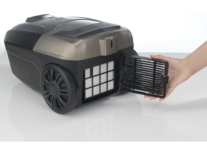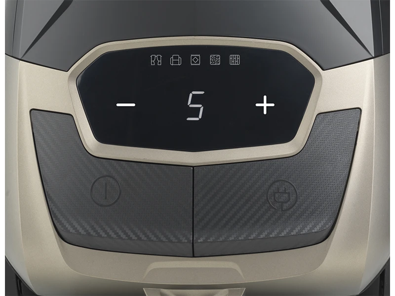 Пилосос оснащений модернізованим високотехнологічним і високопродуктивним двигуном із блискучою ефективністю роботи. Сильніший потік повітря, що протікає через всмоктувальну трубку, шланг і прилад, при меншому енергоспоживанні та безшумній роботі. Ви можете вибрати один із 5 енергоефективних рівнів потужності з максимальною потужністю всмоктування 240 Вт для найкращих результатів.