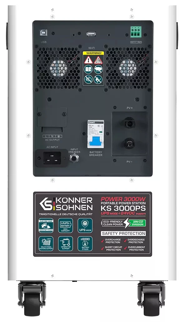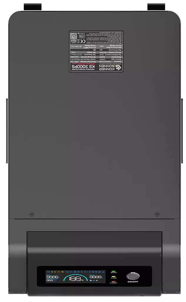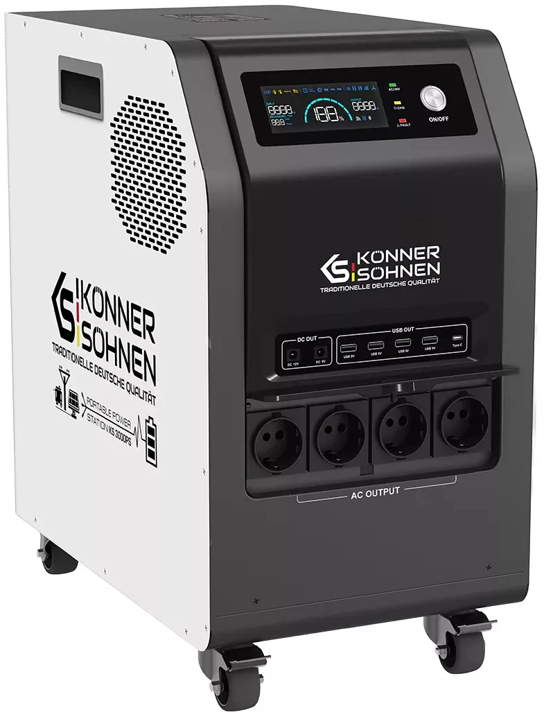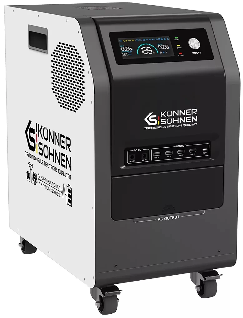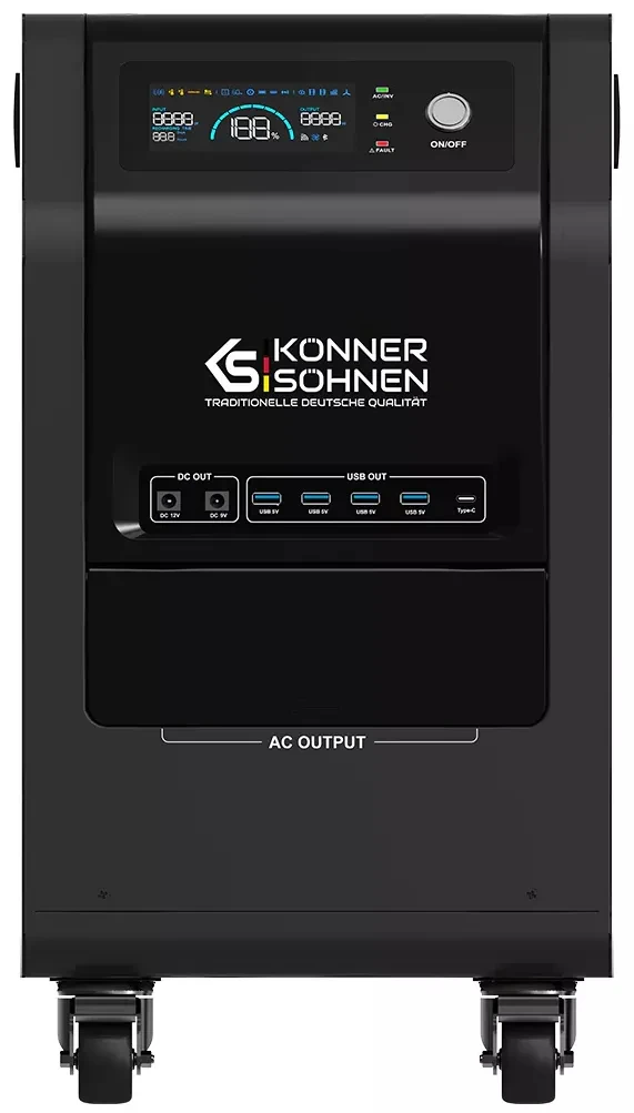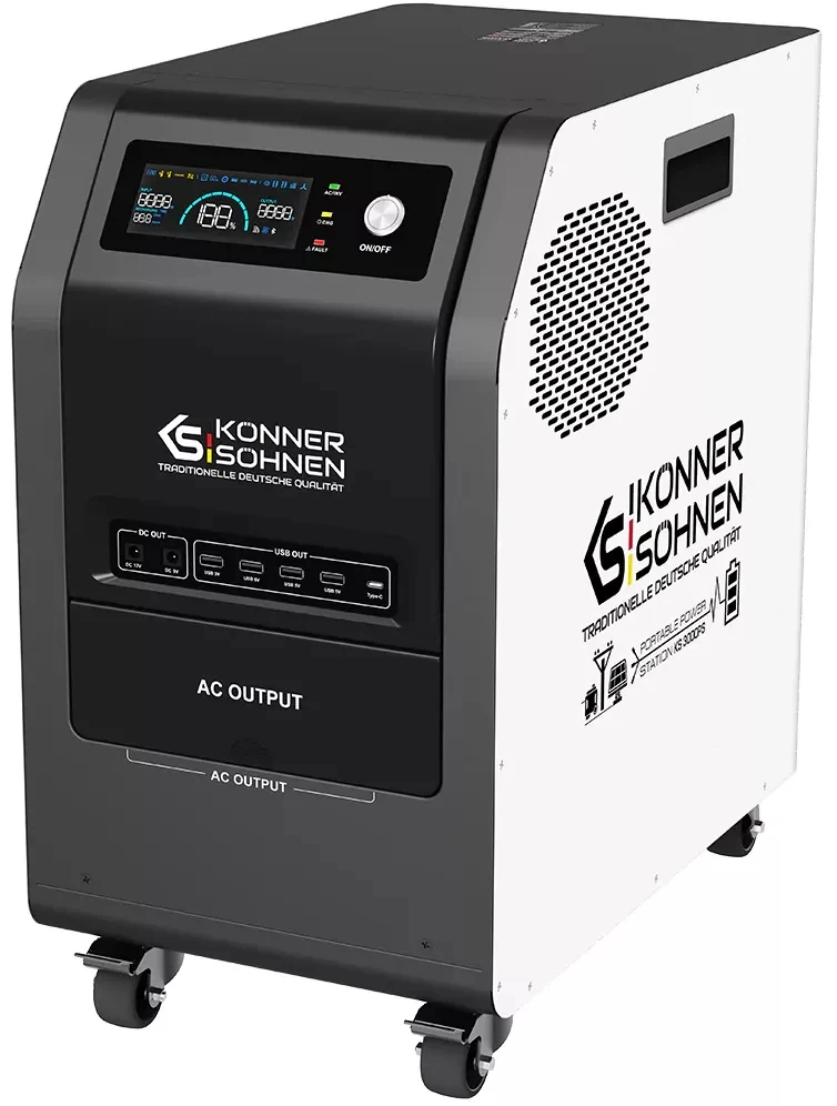 Портативна електростанція Konner & Söhnen KS 3000PS — це універсальне джерело живлення з LiFePO₄-акумулятором 3,2 кВт·год і чистою синусоїдою для чутливої техніки. Модель підтримує заряджання від мережі, сонячних панелей, зовнішніх батарей та генераторів постійного струму. Вбудований MPPT-контролер забезпечує швидке сонячне заряджання, а функція UPS захищає обладнання від раптових відключень. Станція підходить для дому, бізнесу та подорожей, працюючи цілодобово в автономному режимі. Завдяки мобільній конструкції її легко транспортувати та інтегрувати у різні енергосистеми.