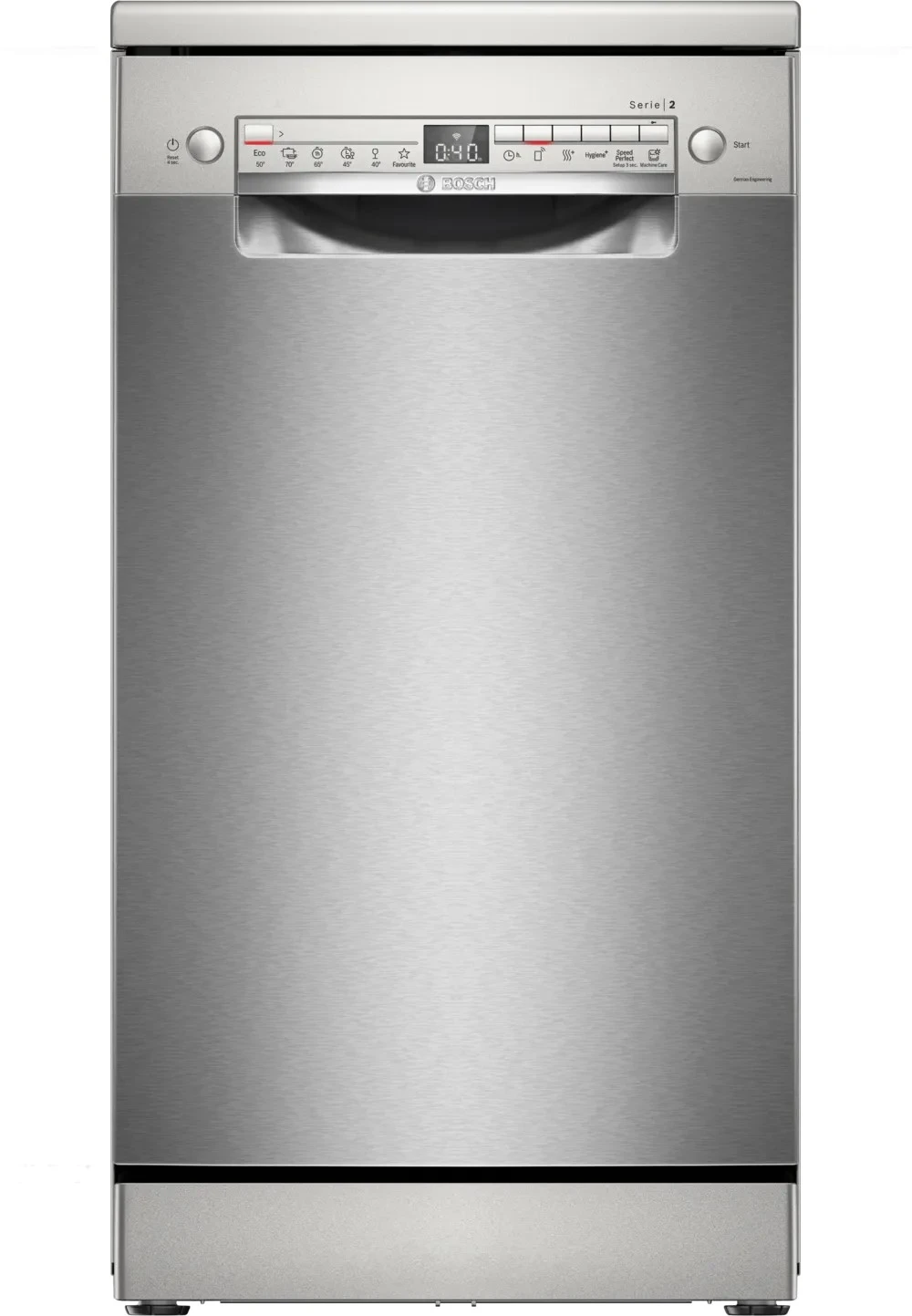 Bosch SPS2IKI55K — вузька посудомийна машина з підтримкою Wi-Fi та застосунку Home Connect, яка забезпечує ідеальну сушку навіть пластикового посуду, тишу в роботі та інтелектуальний вибір програм. Ідеальне рішення для компактних кухонь, що поєднує інновації Bosch із комфортом повсякденного використання. Завдяки сучасним функціям, таким як ExtraDry, Easy Start і SpeedPerfect, вона легко адаптується до ваших щоденних потреб.