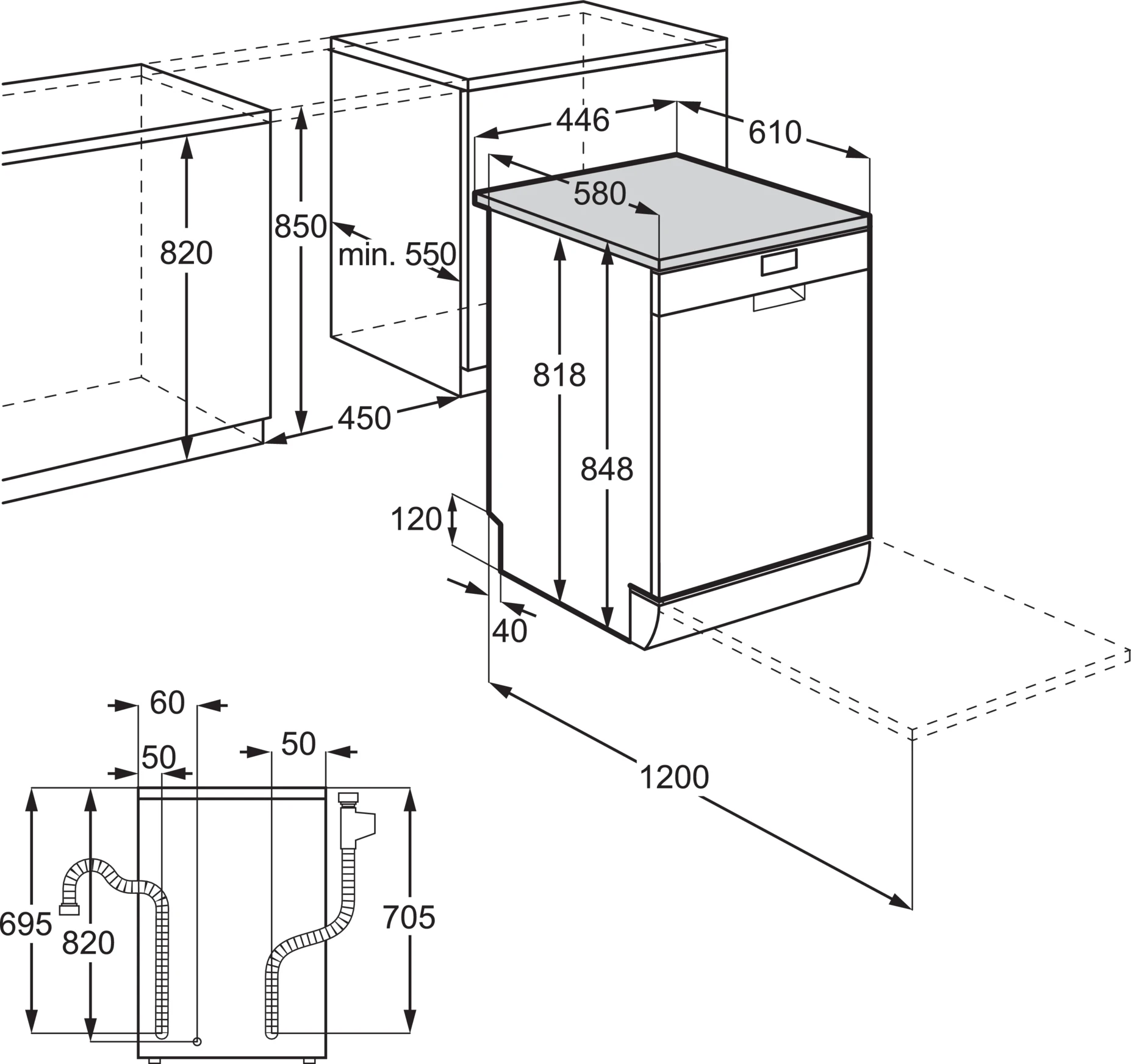 - Оснащення Верхній кошик із FlexiLift; Верхній кошик із можливістю регулювання висоти навіть при повному завант