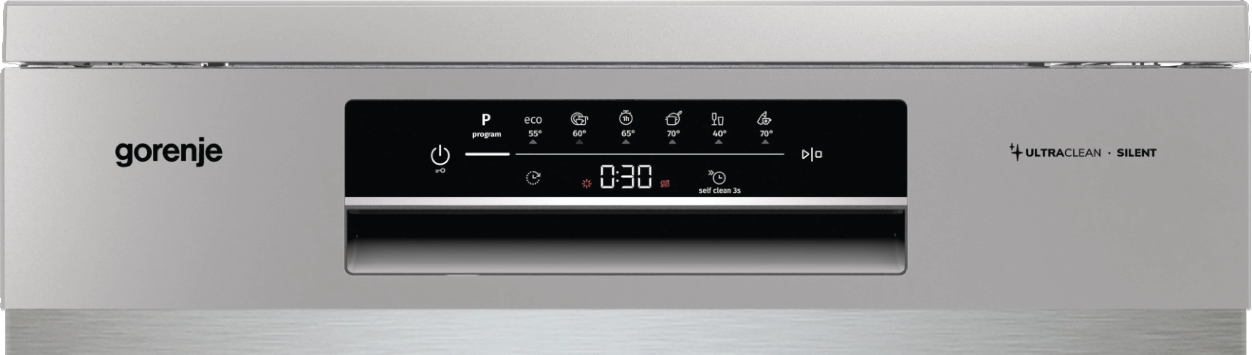 Посудомийна машина Gorenje оснащена трьома кошиками та вміщує до 16 комплектів посуду. Має програми швидкого (15 хв), щоденного (1 год), делікатного миття скла, самоочищення та ExtraHygiene. Система AquaStop захищає від протікань, а функція SelfCleaning спрощує обслуговування. Інтерфейс SimpleControl зручний у користуванні, а підключення до гарячої води та програма «Еко» допомагають заощаджувати енергію.