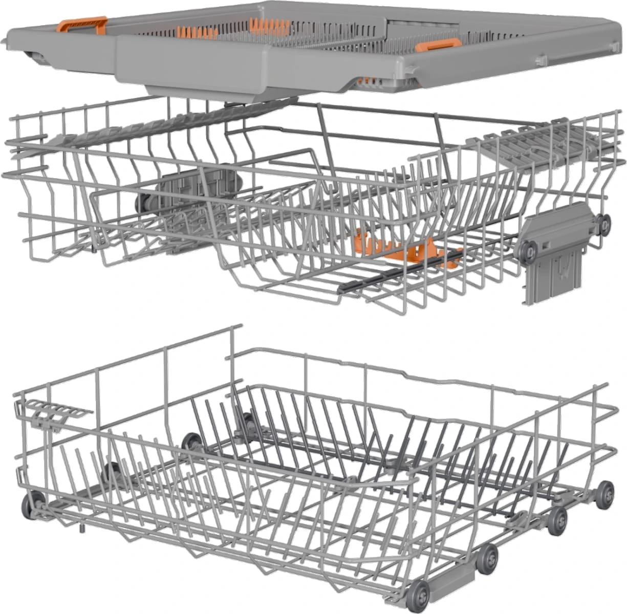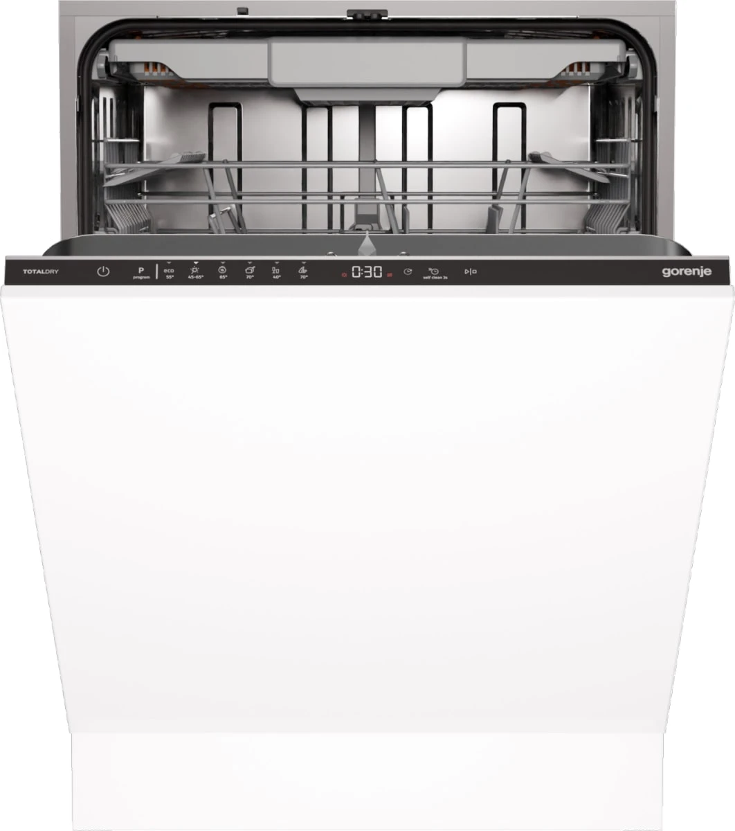 Gorenje GV16D5 — вбудована посудомийна машина на 16 комплектів посуду з трьома кошиками, автоматичним відкриванням дверцят (TotalDry) і сенсорним керуванням. Оснащена програмами AutoProgramme, SpeedWash (15 хв), GlassProgramme, ЕкстраГігієна та SelfCleaning. Має регульовані кошики (включно з третьою корзиною), систему захисту від протікань AquaStop, зручне управління SmartControl і плавне ковзання кошиків. Ідеально підходить для великої родини.