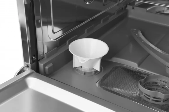 Hansa ZWM556SH — компактна посудомийна машина, яка поєднує стильний дизайн і високу функціональність. Завдяки місткості на 6 комплектів посуду та 5 програмам миття, включаючи інтенсивну, економну та делікатну для скла, вона забезпечує ефективне очищення при мінімальних витратах води — лише 6,5 л за цикл. Конденсаційна сушка, електронні індикатори солі та ополіскувача, а також таймер відстрочки старту на 2, 4 або 8 годин додають зручності у використанні. Сріблястий корпус і білий дисплей надають пристрою сучасного вигляду, а рівень шуму в 49 дБ гарантує тиху роботу. Енергоефективність класу A+ дозволяє економити електроенергію без шкоди для якості миття.