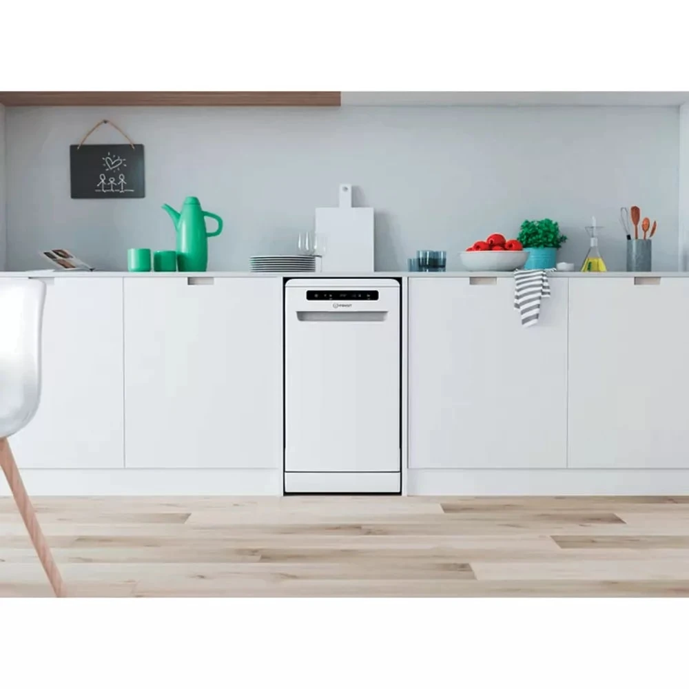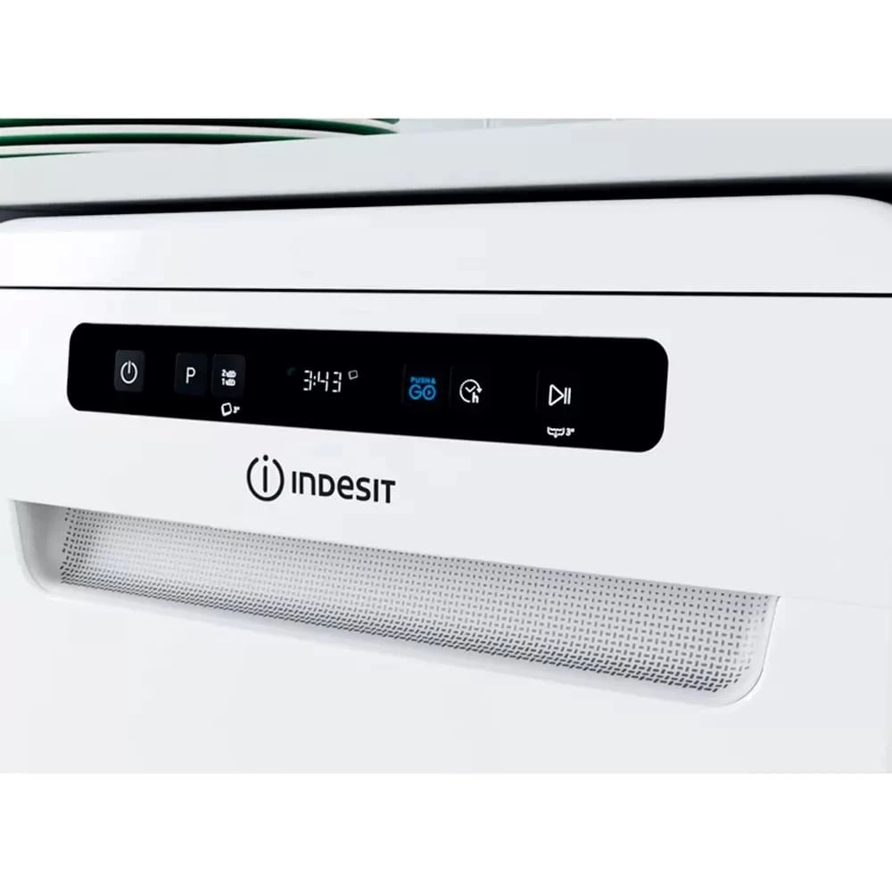 Посудомийна машина Indesit DSFO3T224C — це вузька модель шириною 45 см, яка вміщує до 10 комплектів посуду. Завдяки інверторному двигуну вона працює тихо та енергоефективно (A++), споживаючи лише 9–11 літрів води за цикл. Функція Push&Go дозволяє запустити миття одним натисканням, а eXtra Size забезпечує простір для великого посуду. Машина оснащена 9 програмами, включаючи швидкий цикл на 30 хвилин, нічний режим та делікатне миття скла. Функції відкладеного старту, половинного завантаження та захисту від протікань роблять її зручною та безпечною у використанні.