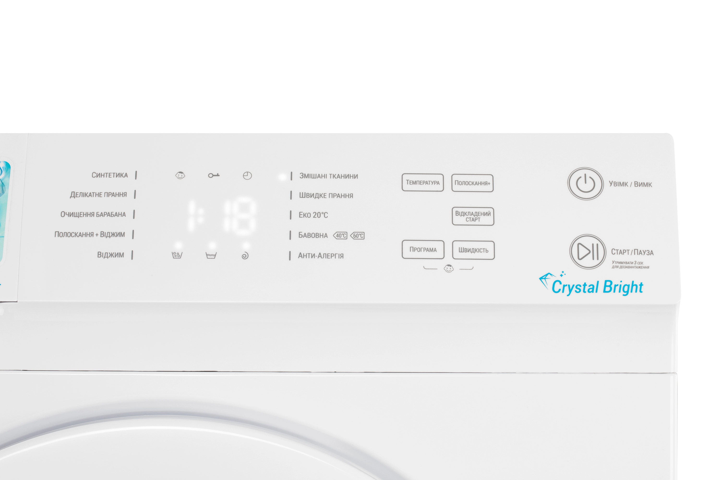 - Додатково захист від дітей; вибір швидкості віджиму; вибір т