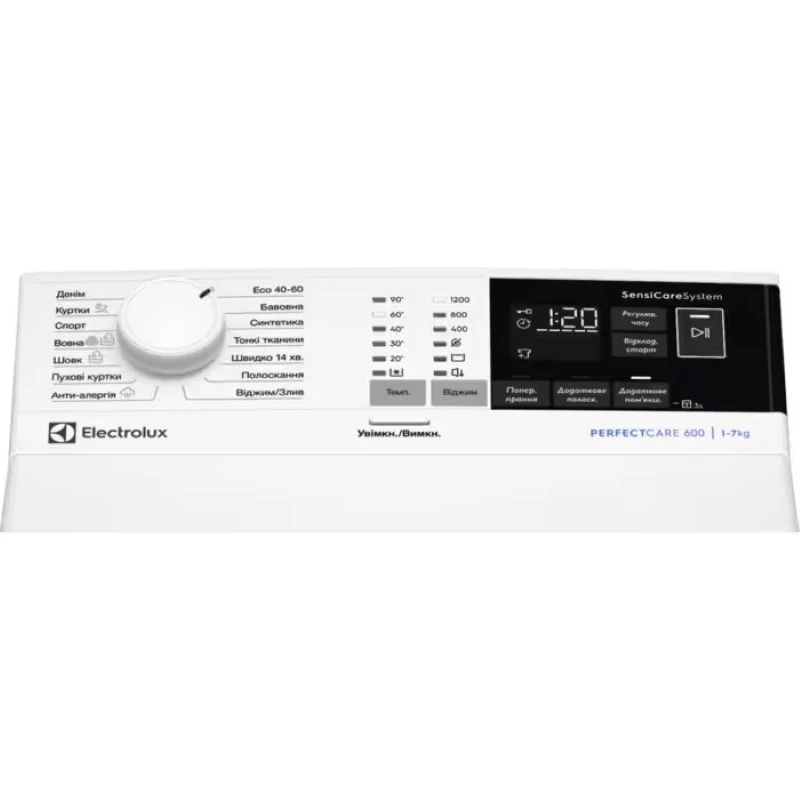 Пральна машина Electrolux вертикальна, 7кг, 1200, A, 60см, дисплей, інвертор, білий