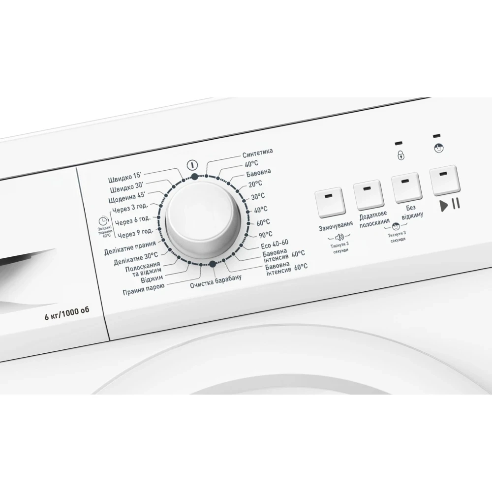 Фронтальна пральна машина Hansa WMHE106UE завантаженням 6 кг і глибиною лише 40 см підходить для вузьких ніш і невеликих ванних кімнат, де стандартна техніка не вміщується. 23 програми охоплюють бавовну, синтетику, делікатне прання, вовну та швидкі цикли від 15 хвилин, а програма парового прання забезпечує гігієнічний догляд за чутливими тканинами. Захист від дітей, датчик завантаження та захист від перетікання і переливу формують базовий набір функцій безпеки для щоденного використання. LED-індикація зі світлодіодами червоного кольору і механічне керування забезпечують зрозуміле і надійне управління без зайвої складності.