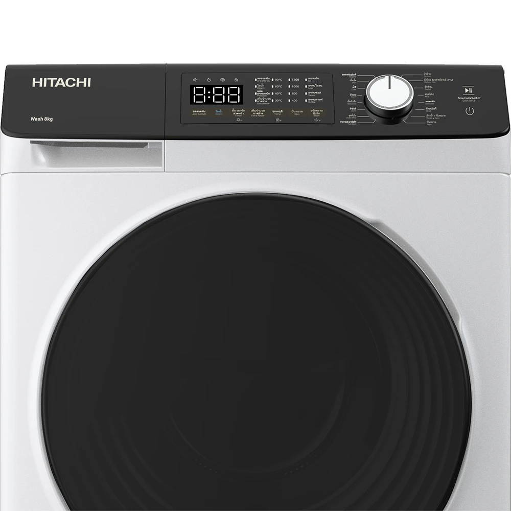 Пральна машина Hitachi фронтальна, 8кг, 1400, A+++, 60см, дисплей, пара, інвертор, люк чорний, білий