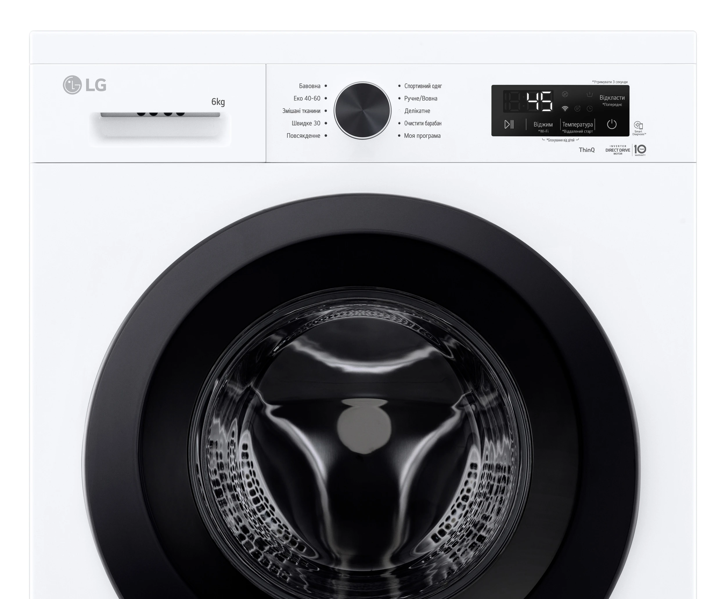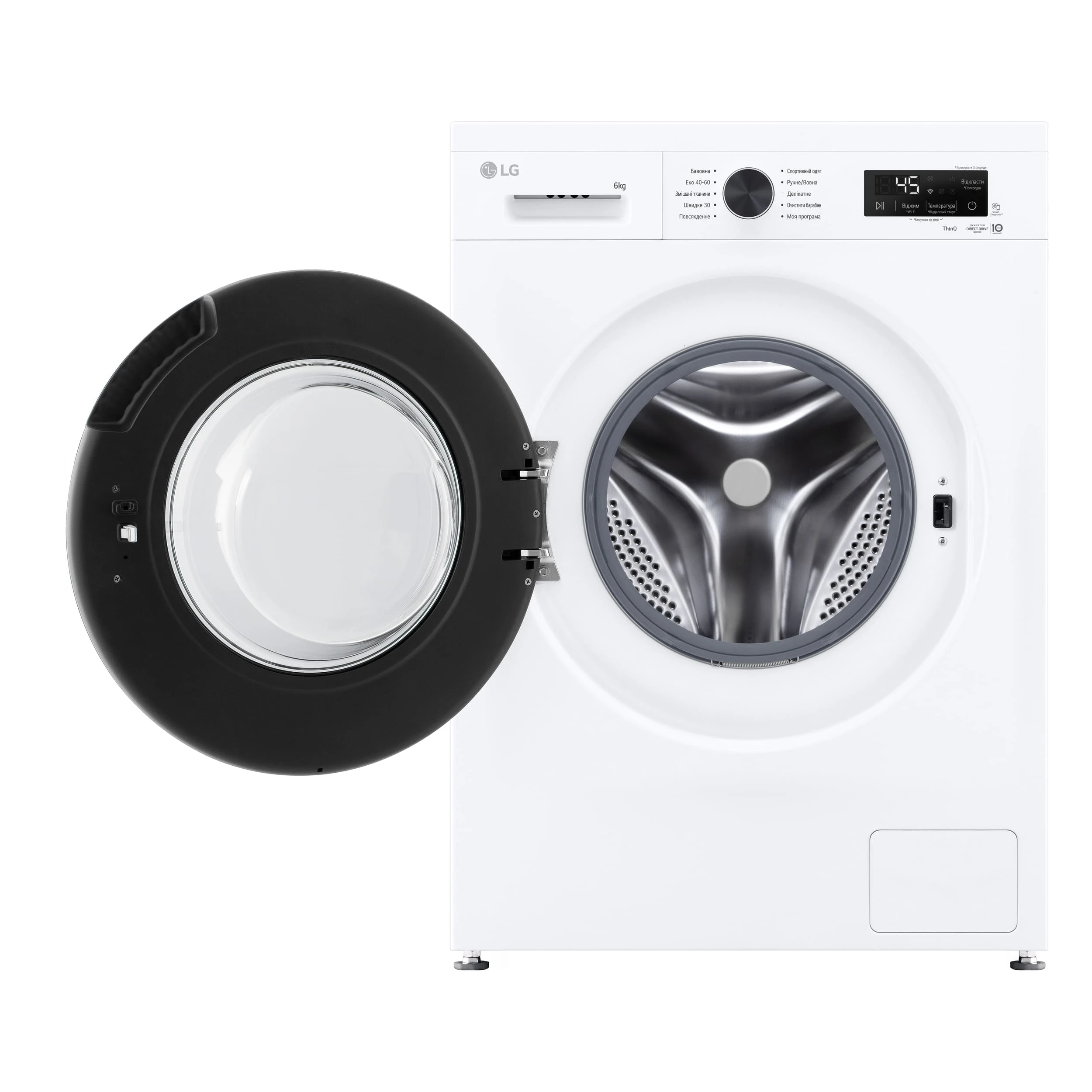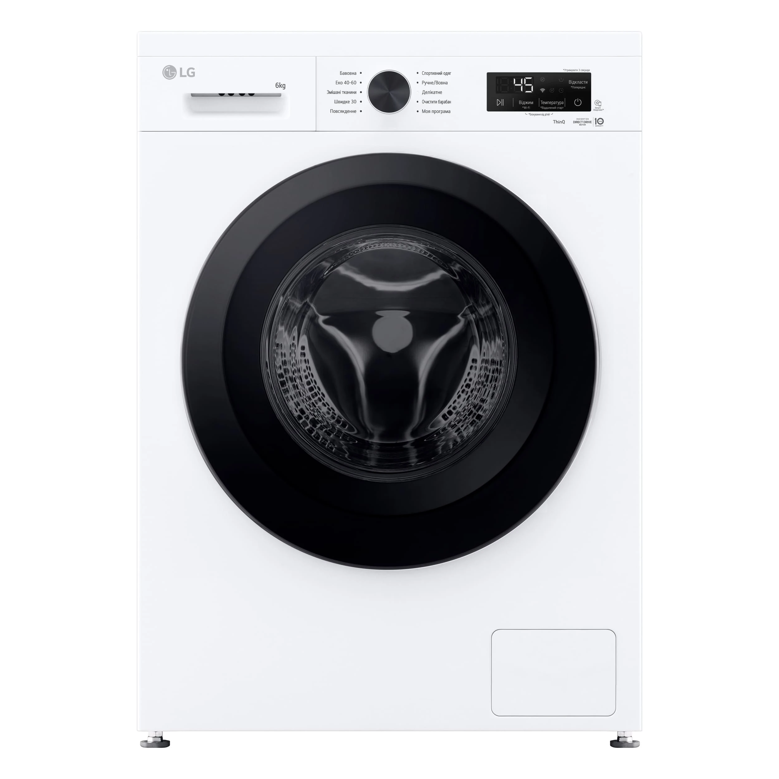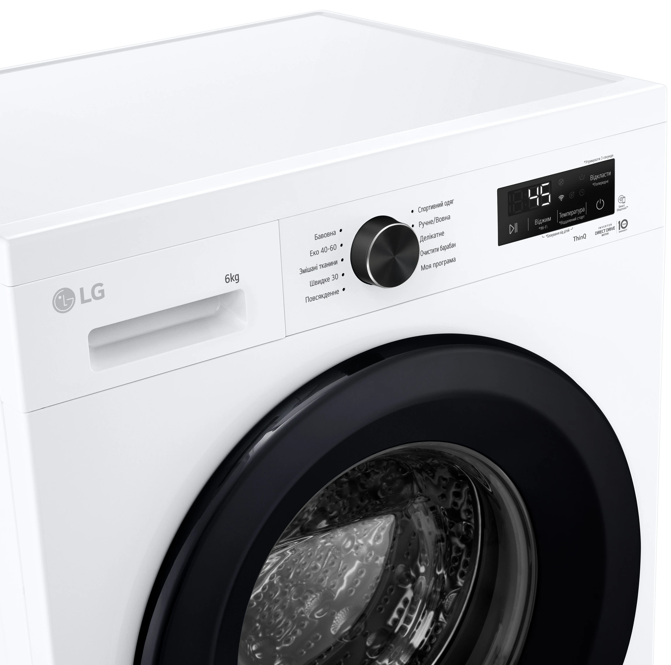 Пральна машина LG фронтальна, 6кг, 1200, В, 44см, дисплей, пара, інвертор, білий