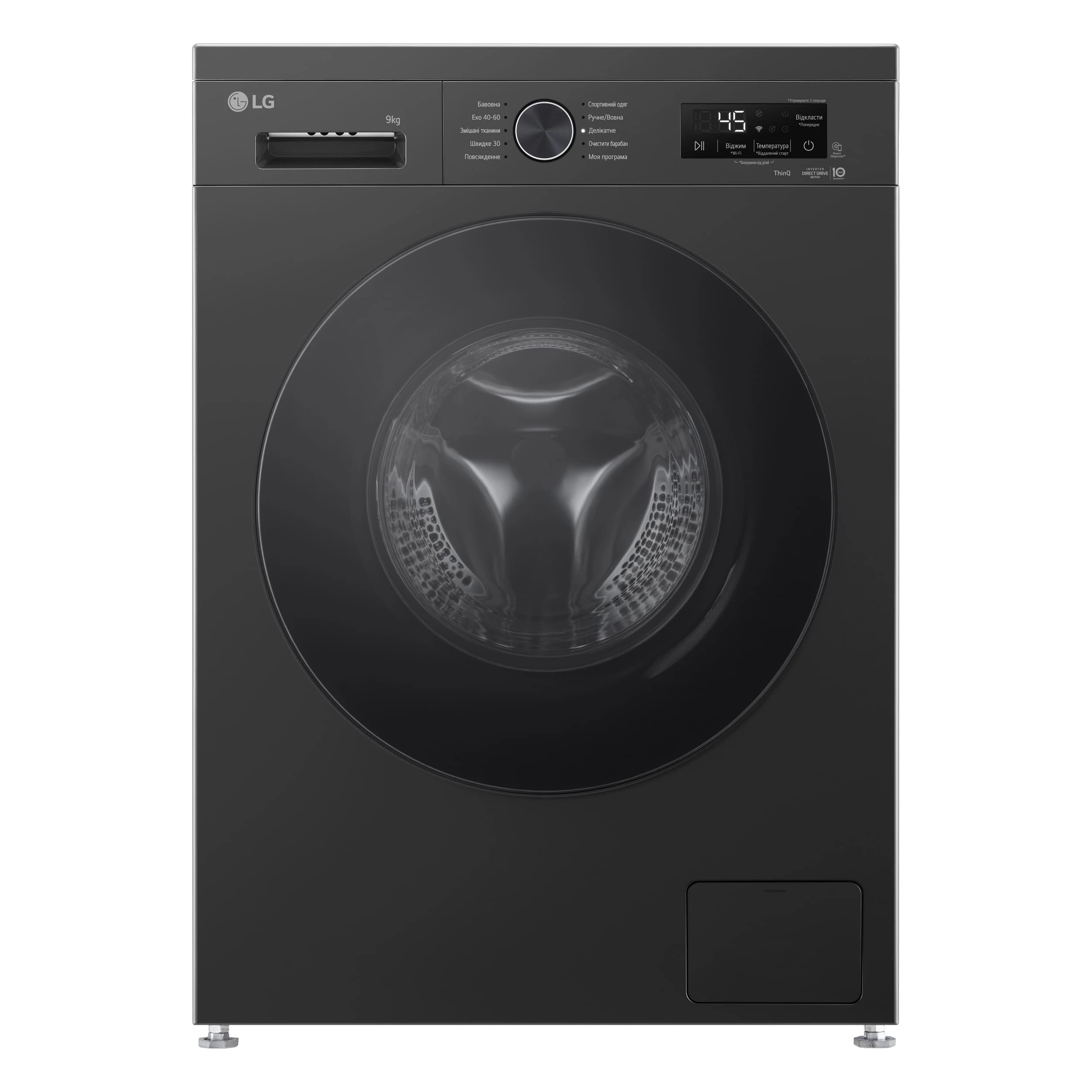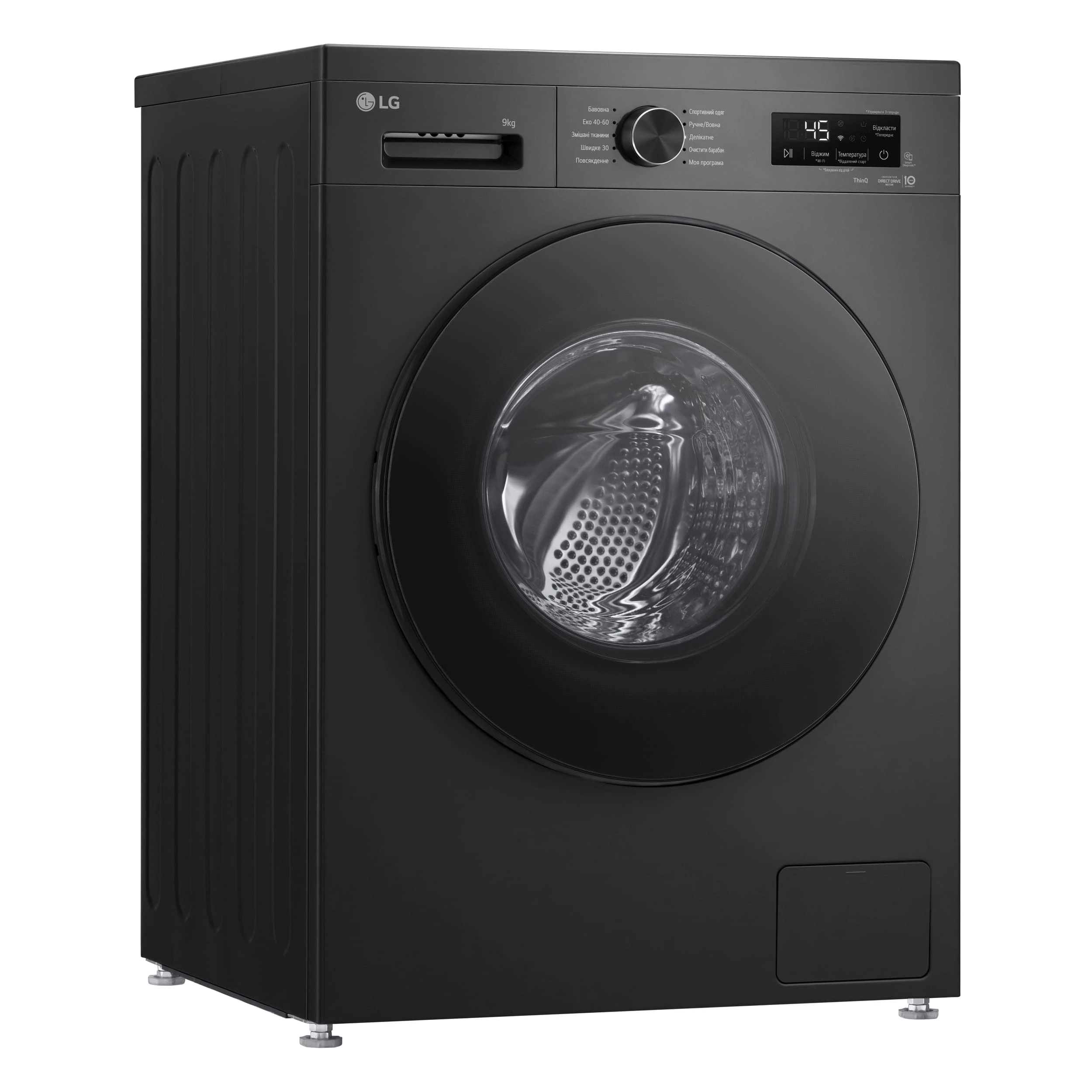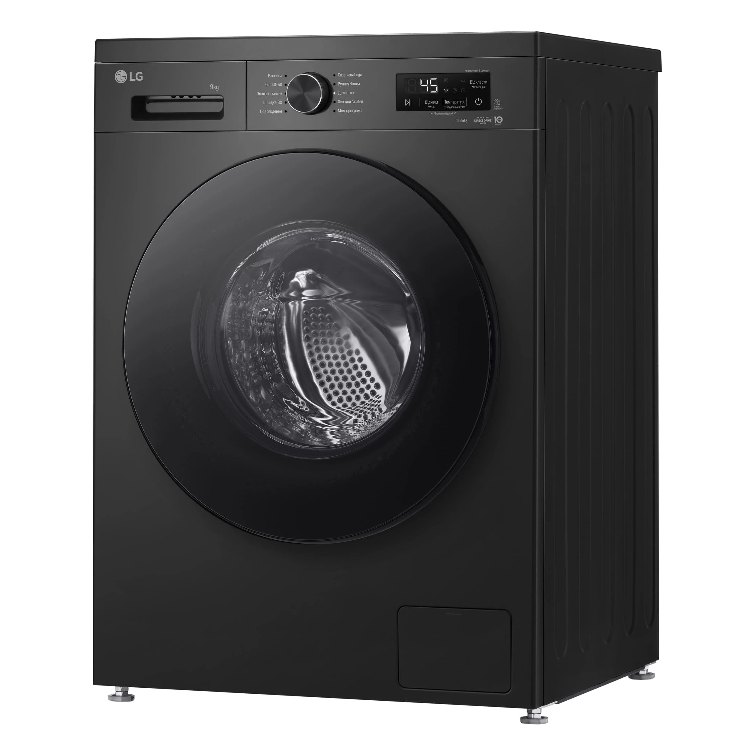 Пральна машина LG фронтальна, 9кг, 1400, A, 55см, дисплей, пара, інвертор, чорний