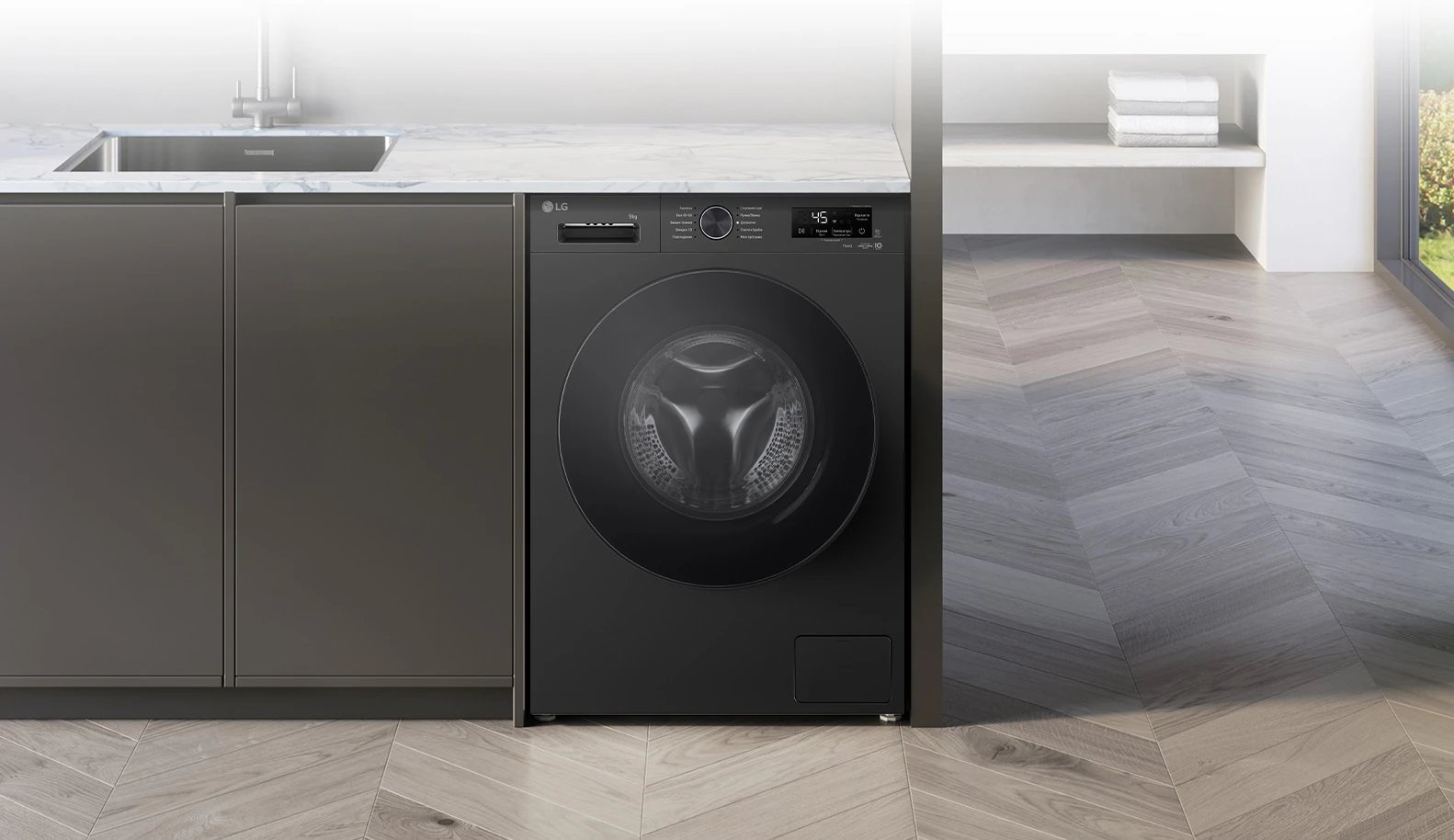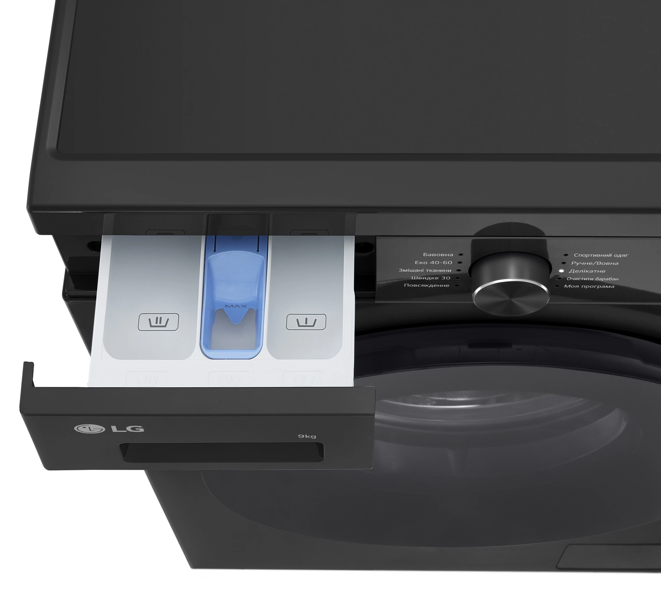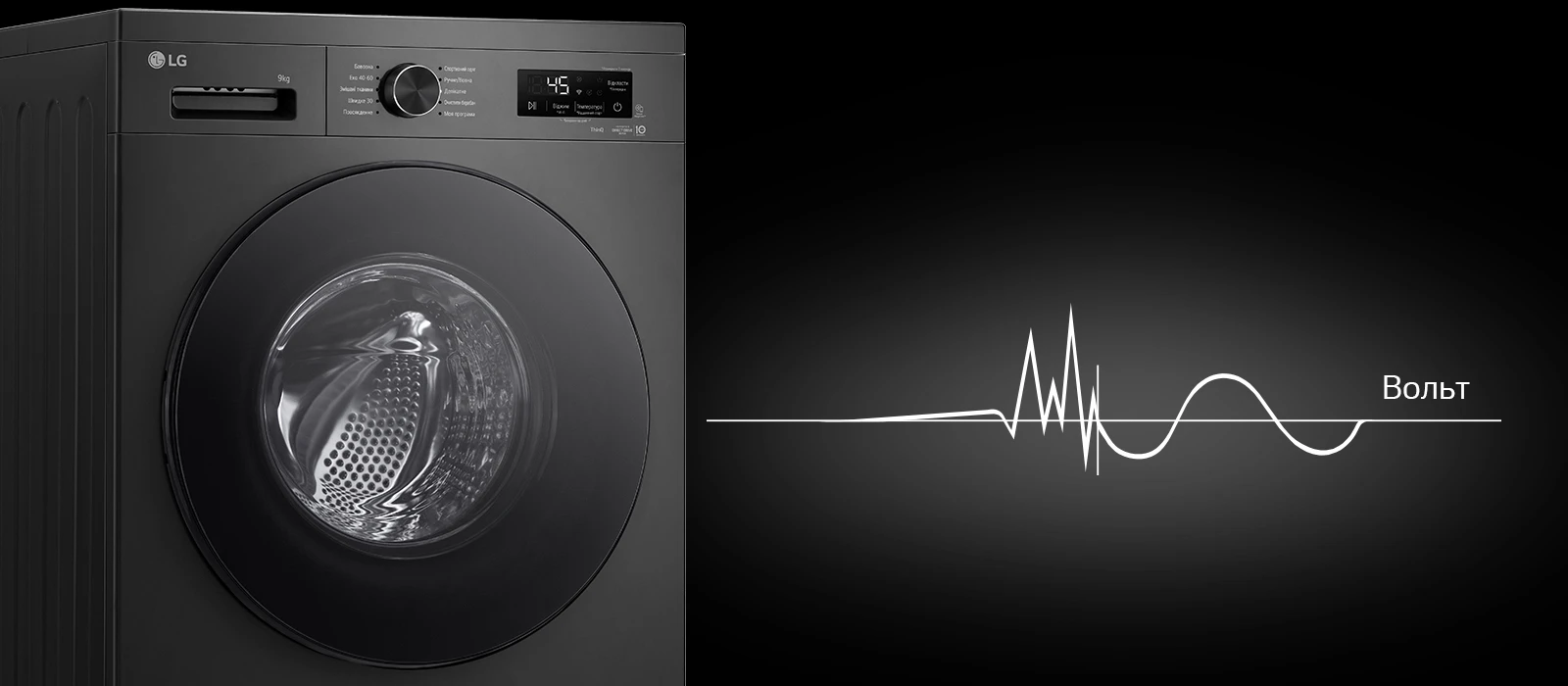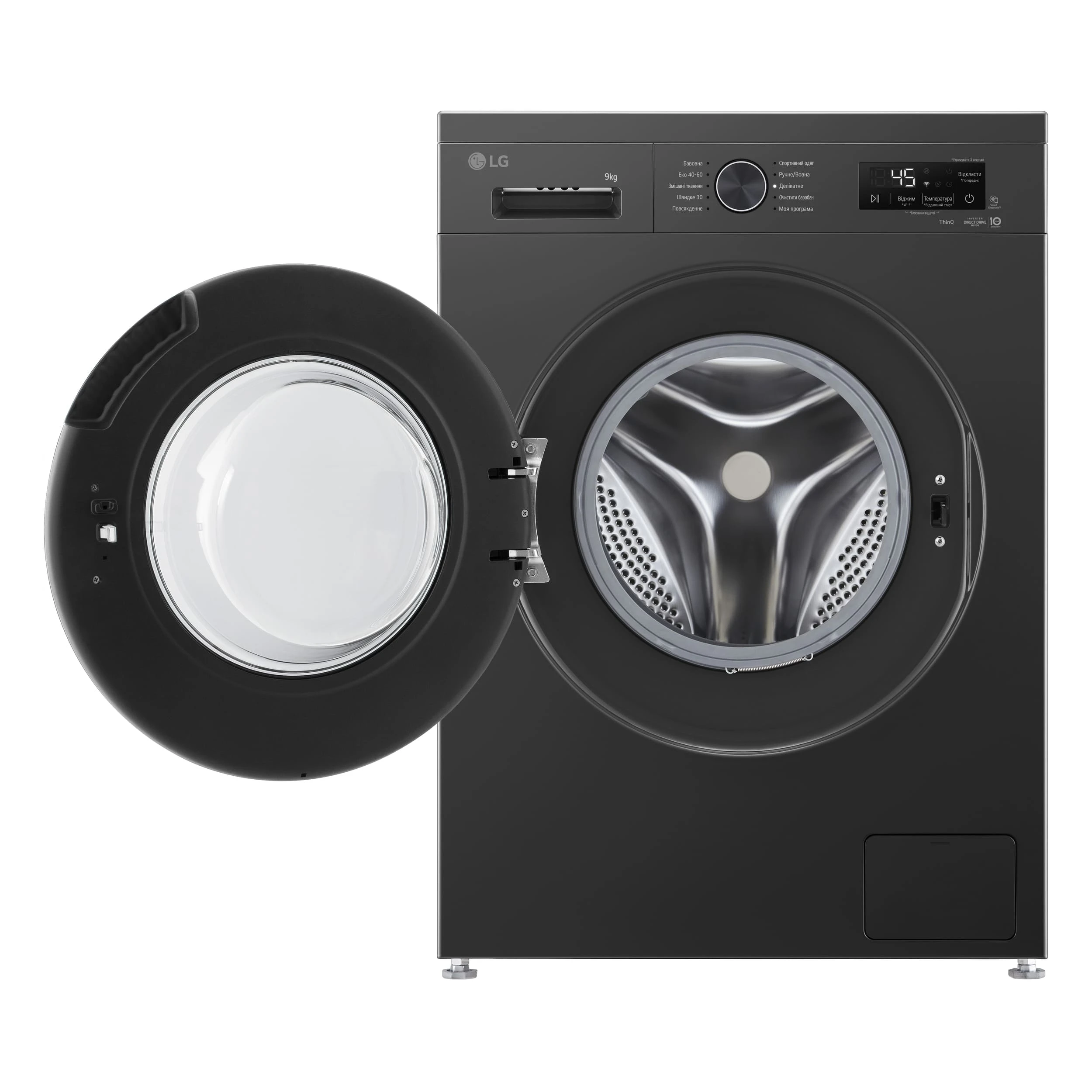 Пральна машина LG фронтальна, 9кг, 1400, A, 55см, дисплей, пара, інвертор, чорний