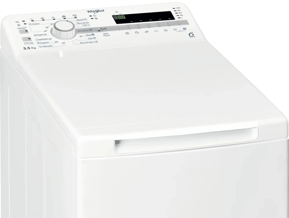 Пральна машина Whirlpool вертикальна, 5,5кг, 1000, A++, 60см, дисплей, білий