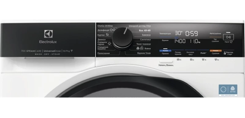 Прально-сушильна машина Electrolux фронтальна, 11(7)кг, 1600, D, 64см, дисплей, пара, інвертор, univ